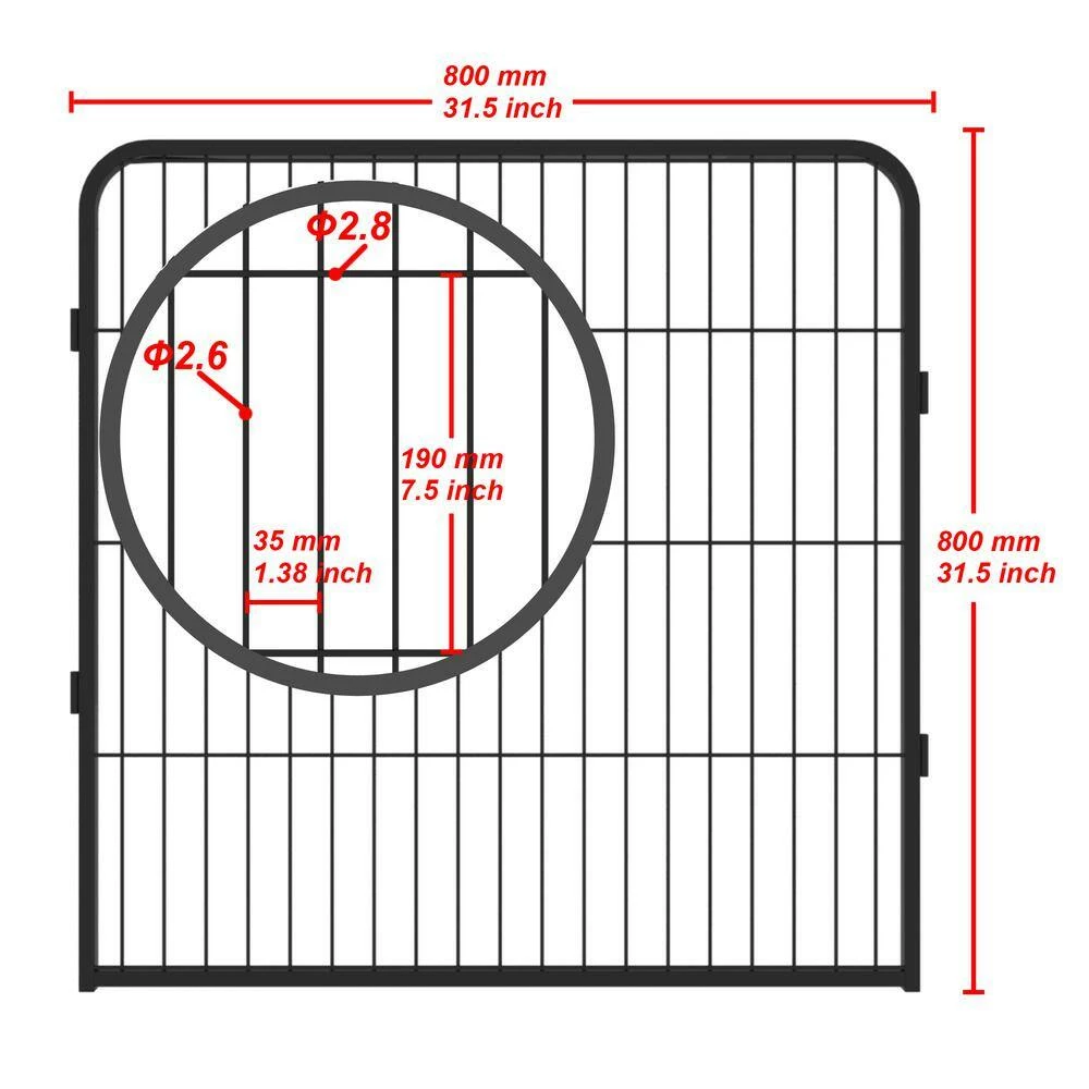 The pet pen consists of eight iron plates and can be used both indoors and outdoors. It is made of powder-coated iron, waterproof and rust-resistant. Designed with doors and safety locks. Pet enclosures allow for a variety of shapes, such as rectangles and squares, to suit the needs of different Spaces. You don’t have to worry about storage, either, because it folds up and folds up when not in use, saving space.