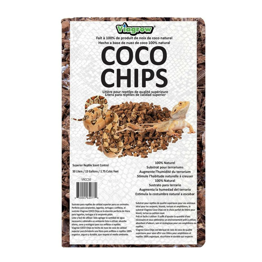 - [Plant uses] in addition to being a great reptilian and amphibian substrate, Viagrow coco chips can be used for landscaping, plant nurseries, greenhouses, aquaponics, hydroponics and popular with orchid and epiphyte enthusiasts our premium coconut chips are made from top quality coco husk, providing the best results for increased aeration, better drainage and improved moisture retention while remaining pH neutral
