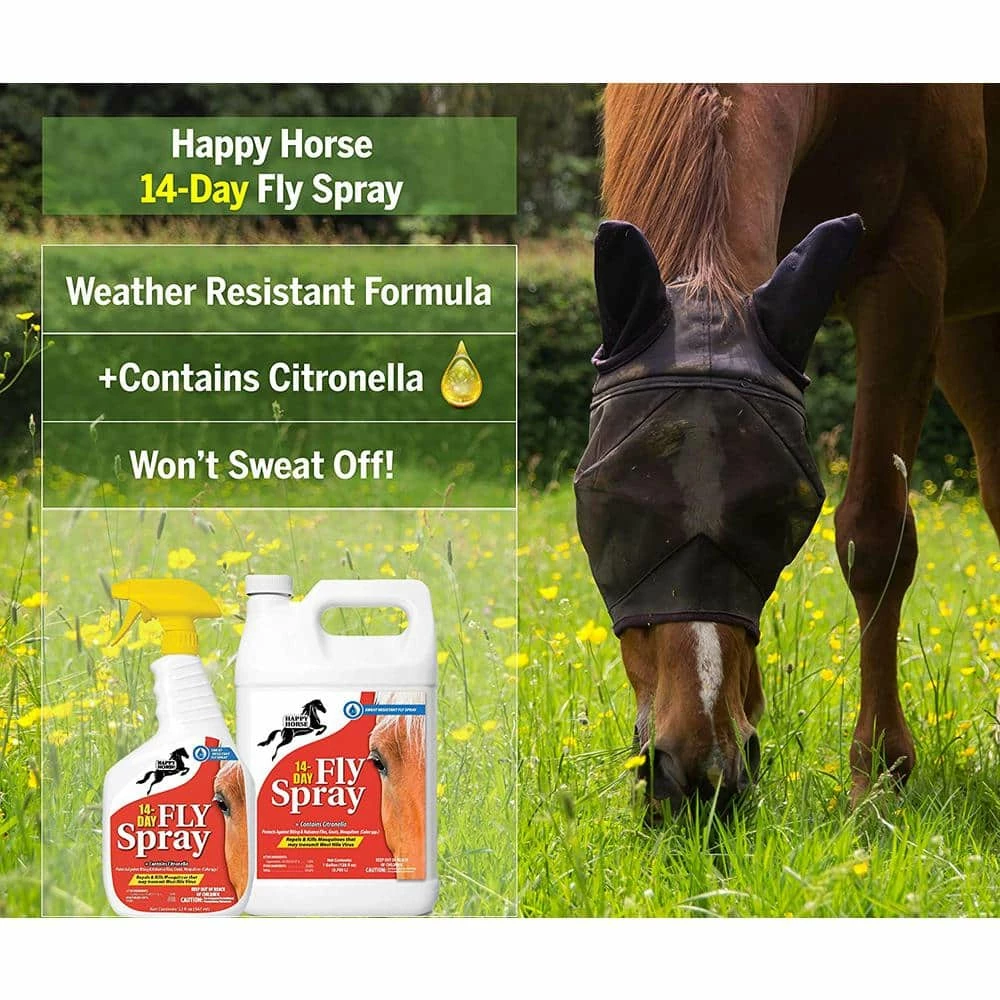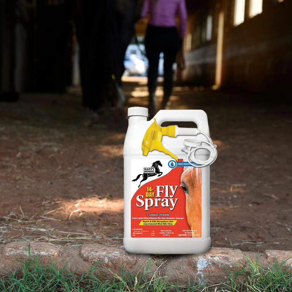 Happy Horse 1 Gal. Sweat Resistant Fly Spray kills and repels flies, fleas, ticks and mosquitoes. Its formulated with powerful active ingredients and a synergist to provide a quick knockdown of flying insects. The product is sweat and water resistance, plus residual activity that lasts for hours.