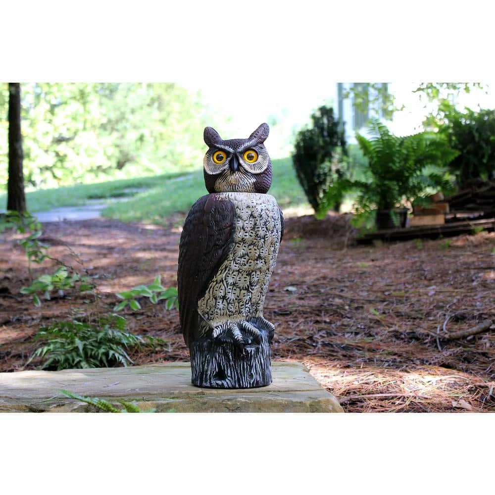 - NOT JUST A SCARECROW: If you are an owl lover, you will be thrilled with our realistic Great Horned rendering. Besides being an excellent Chemical-Free, Safe and Humane bird repellant, this magnificent work of art makes an amazingly unique outdoor/indoor decor. It is the perfect garden ornament and conversation starter. Made with no less than 80% recycled materials.