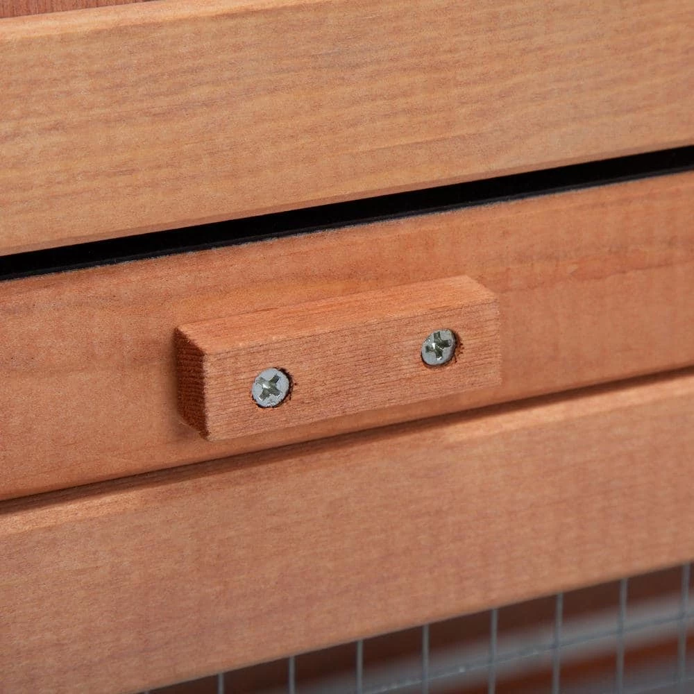 - Cage is made of pine, and has a weather-proof asphalt roof to prevent rain and snow corrosion, so it can be used outdoors for a long time