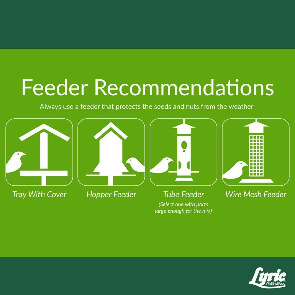 Lyric Woodpecker Mix is the perfect treat for your feathered friends visiting your backyard bird feeders. Lyric Woodpecker Mix is an all natural, 100% edible, no-waste bird food that provides 8 nutritional ingredients for wild birds that include shelled peanuts, cracked corn, sunflower kernels, pecans, pistachios, shelled pumpkin seed, dried cranberries, and raisins. The high protein and fat content of this mix fuels birds’ high level of daily activity – whether they’re foraging for food in the winter or building nests in the spring. Lyric Woodpecker Mix can be used in most bird feeders, including mesh tube feeders, hopper feeders, and tray feeders. If you want to exclusively attract woodpeckers and other clinging birds, use a woodpecker feeder or peanut feeder. Woodpeckers will cling to the mesh and peck away at the various foods until they can eat them or pull them through the mesh to eat. Place the wild bird feed in the bird feeders and enjoy watching as the Woodpecker Mix attracts a wide variety of colorful and fun-to-watch wild birds like Acorn Woodpeckers, Blue Jays, chickadees, Downy Woodpeckers, Hairy Woodpeckers, Northern Flickers, nuthatches, Red-bellied Woodpeckers, Stellar’s Jays, titmice, and more!