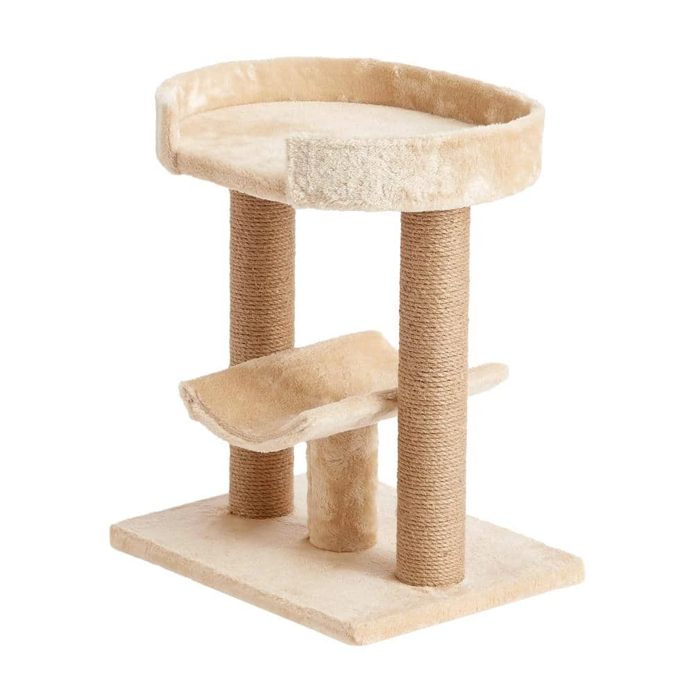The Laurel features 2 scratch posts, an elevated sided perch and a hammock to give cats lots of perching, playing and scratching options. Top platform offers room to spread out, while bottom platform offers a contoured place to perch or cat nap. Jute-wrapped posts for scratching. Neutral beige to fit in any decor. 21.2 in. tall. 17.7 in. WEasy assembly required.