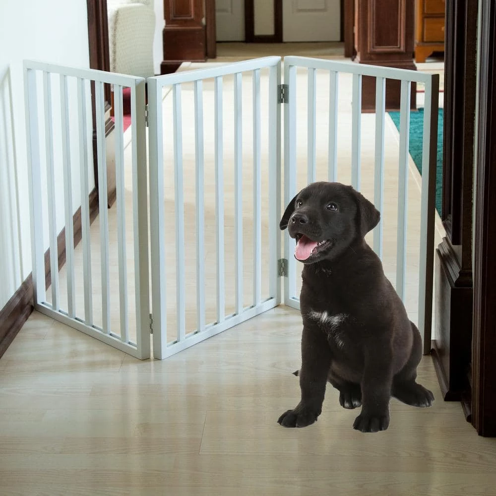 It’s never been easier to keep pets where they’re supposed to be, than with the Freestanding Wooden Pet Gate from Petmaker. The gate quickly unfolds like an accordion and stands on its own to safely limit your pets access to certain areas of your home. Folds to 3 in. for easy storage.
