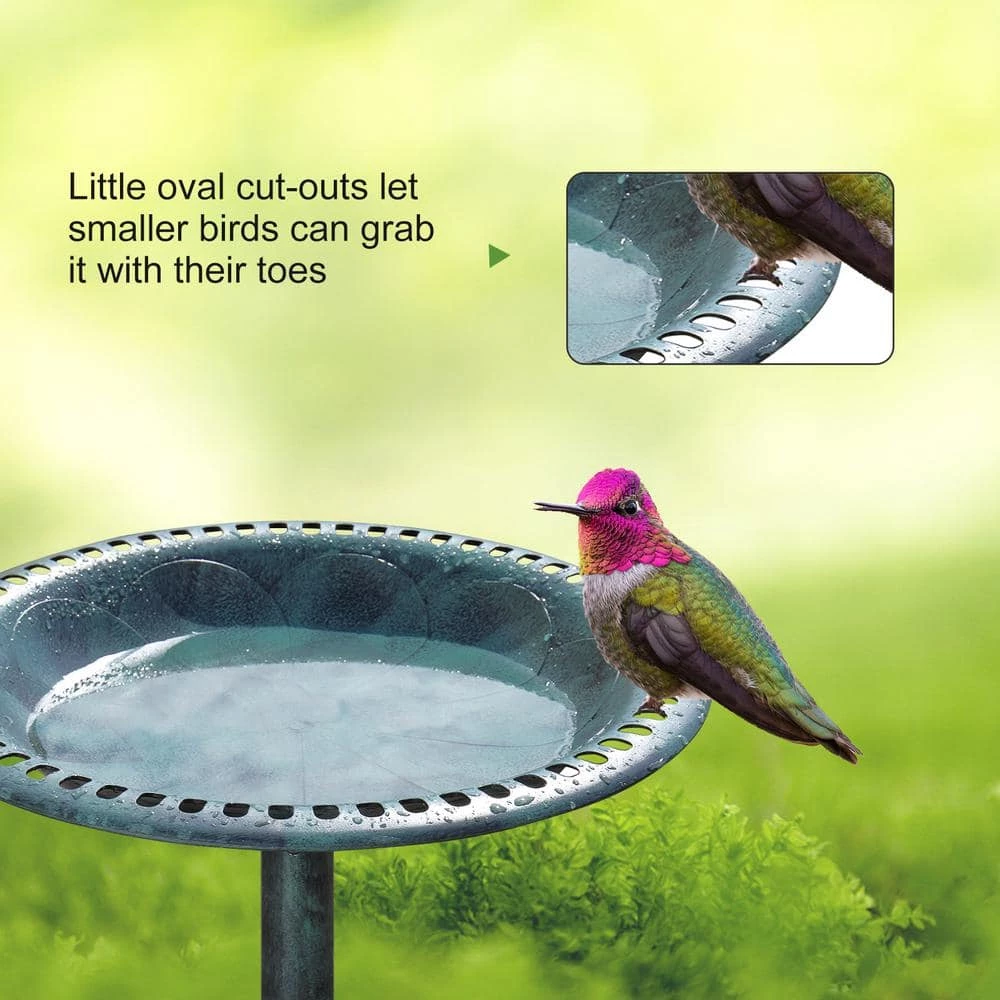 28 in. Antique Green Bird Bath with Solar Fountain Resin Pedestal Birdbaths Vintage Garden Decor by VINGLI