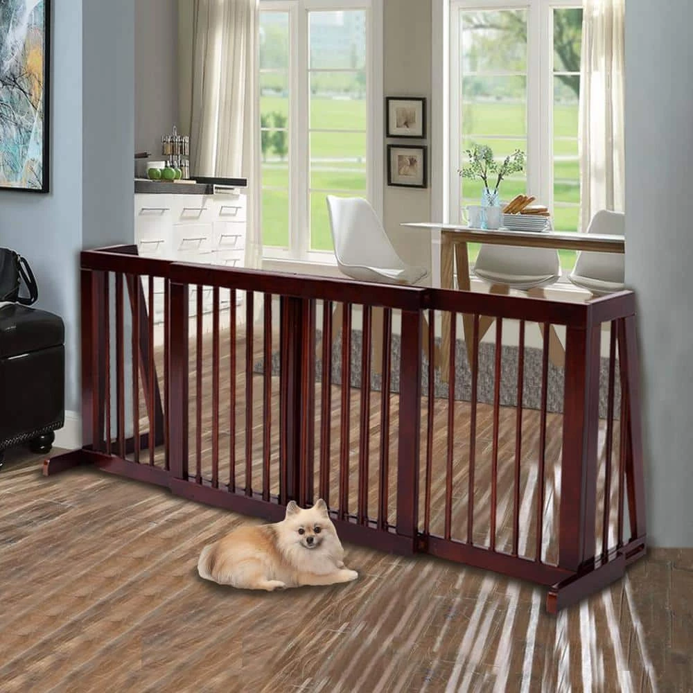 This elegant, furniture-quality gate utilizes slide technology which lets the pet owner precisely adjust span down to the exact millimeter for a custom fit. Spanning from 28 in., the size of an average doorway, up to 80 in. this gate covers wide openings. This gate is 22 in. H and is rated for small to medium-sized pets.