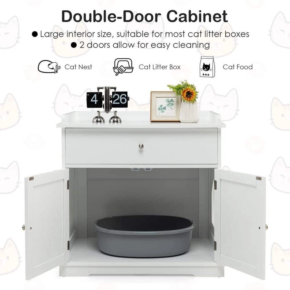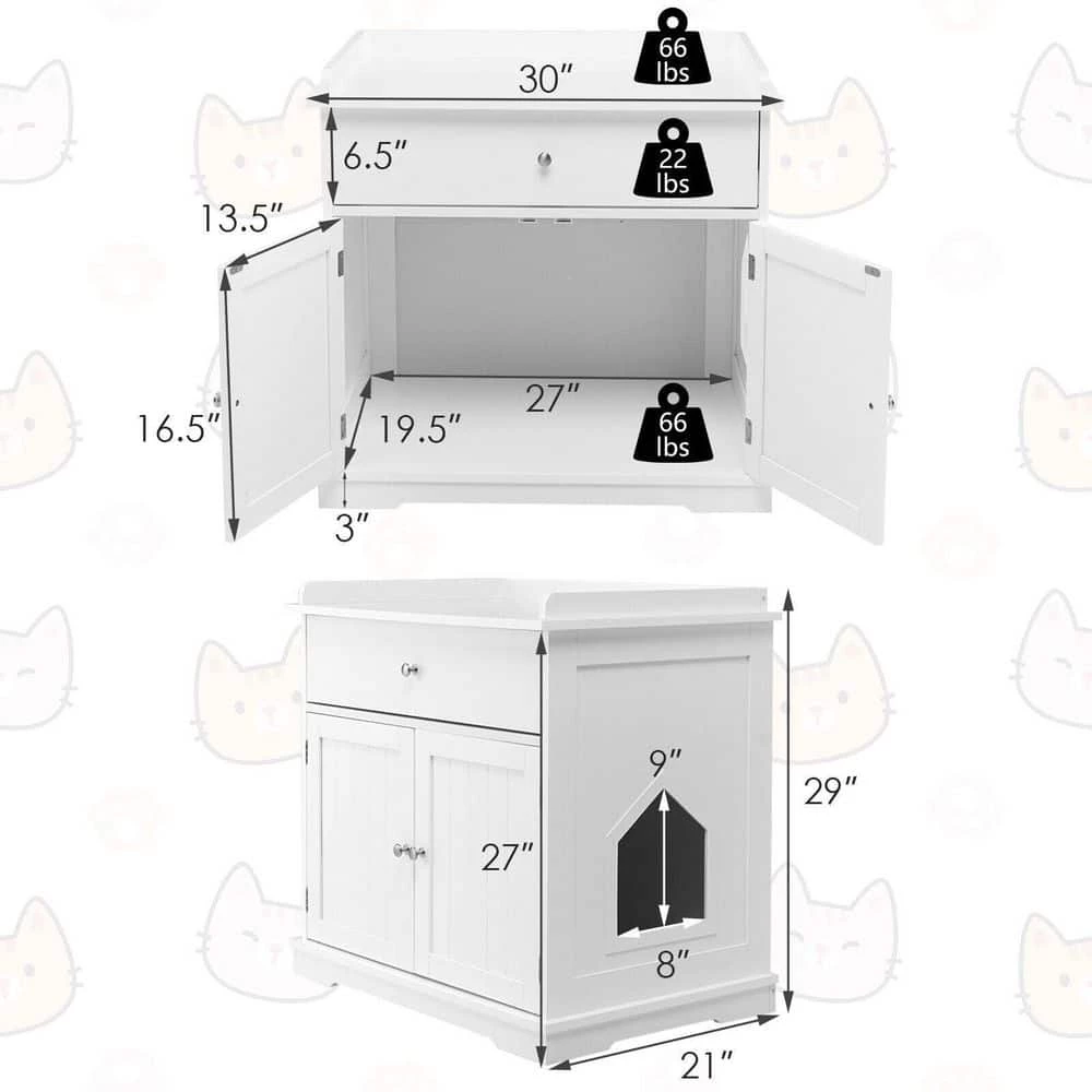- And the interior measures 27 in. L x 19.5 in. W x 16.5 in. H, which is suitable for most cat litter boxes and cat nests