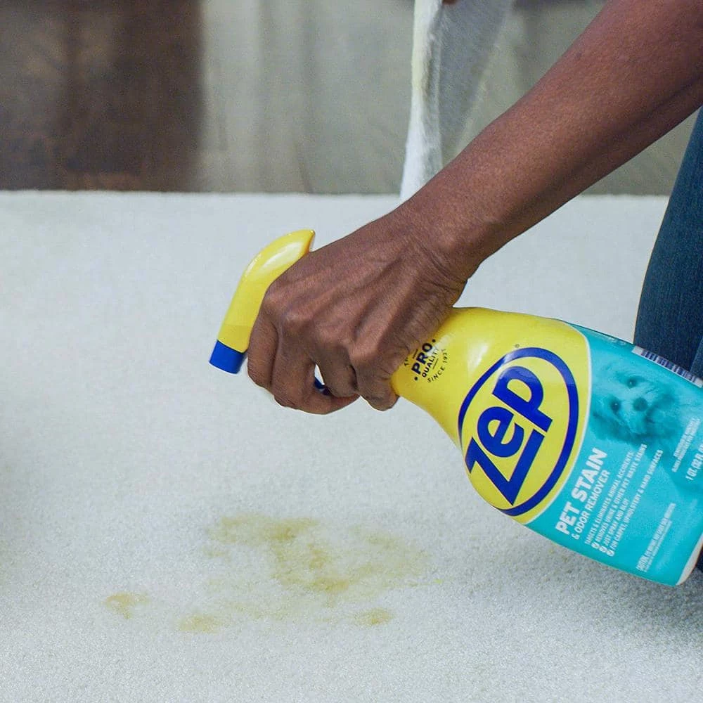 ZEP Pet Stain and Odor Remover is formulated with powerful peroxide (oxy) which eliminates tough stains and odors caused by pets, food, wine and more. It is safe for use around children and pets. Pros rely on the strength of oxy as a spot cleaner and future stain protectant. The formula quickly clears urine, feces, vomit stains and odors and protects against re-soiling. Spray works great as car carpet cleaner for pet accidents. The stain remover is test approved to clean even stain-resistant carpets. After neutralizing stains, ZEP Pet Stain and Odor Remover leaves a fresh scent.