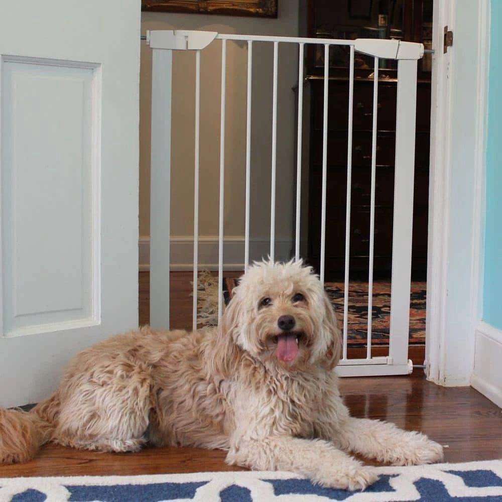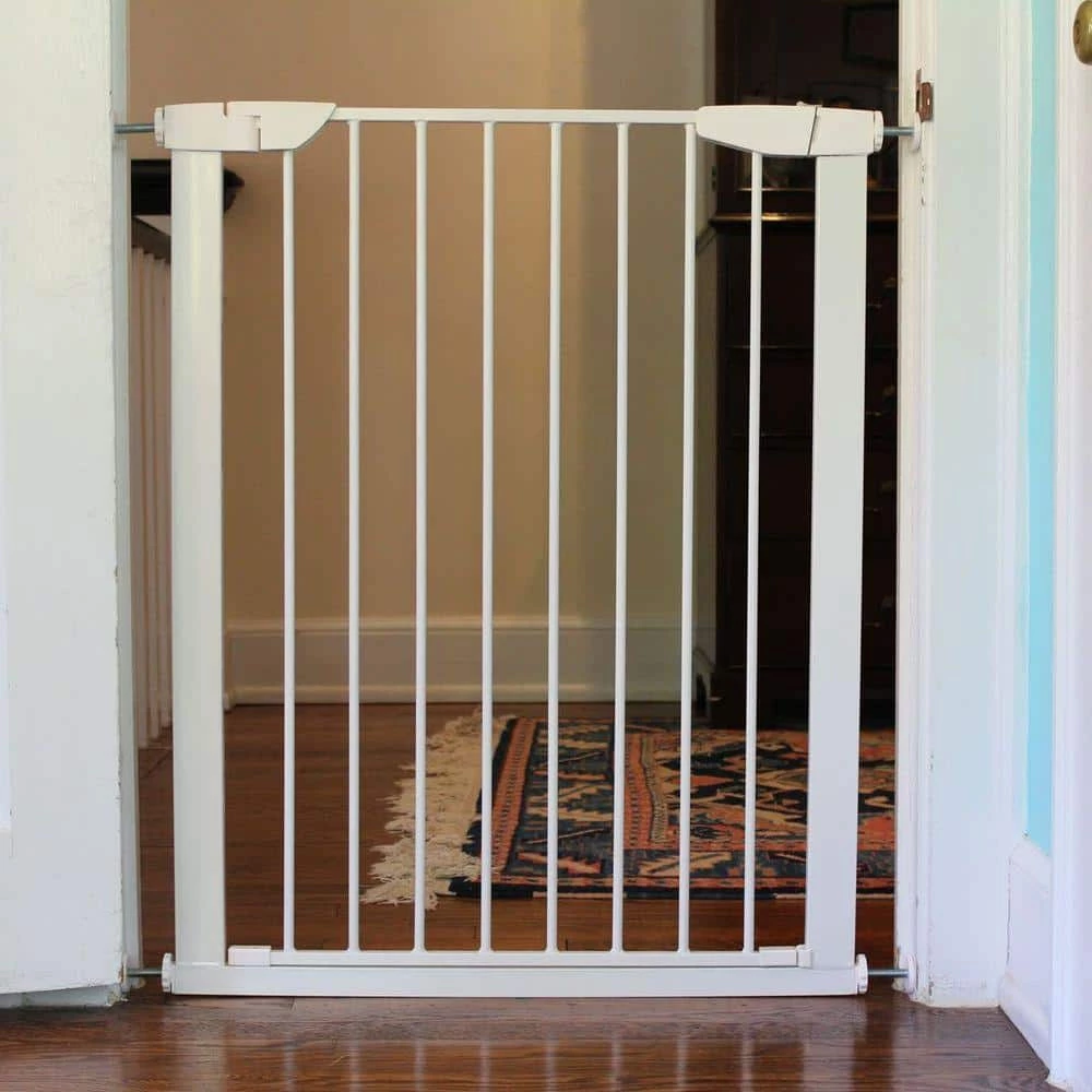 The Extra Tall Premium Pressure Gate is an upgrade to standard pressure gates with new features and functions, all at a great price. Featuring sleek steel, chew-proof construction, this gate is about 20 percent taller than most gates, it measures 36 in. (3 ft.) tall. You’ll love the convenient Auto lock and Auto close functions. The gate door swings open in either direction, too. The Extra Tall Premium Pressure Gate spans 29.5 in. to 32.5 in. but with the use of extensions (sold separately) it can span up to a maximum of 54.25 in. wide. Perfect for your pets, large breeds and jumpers. Bar spacing measures 2.5 in. This gate is the perfect combination of form and function at a fantastic value. Note: Not recommended for top of stair use.