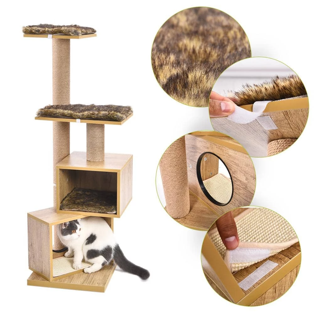 - Ideal scratcher, this high quality modern cat tree is fully wrapped by natural sisal providing irresistible scratching surface that is great for all kinds of sizes cats from kitten to adults and large adult cats to sharpen their claws and trim nail, keeping them from clawing your furniture