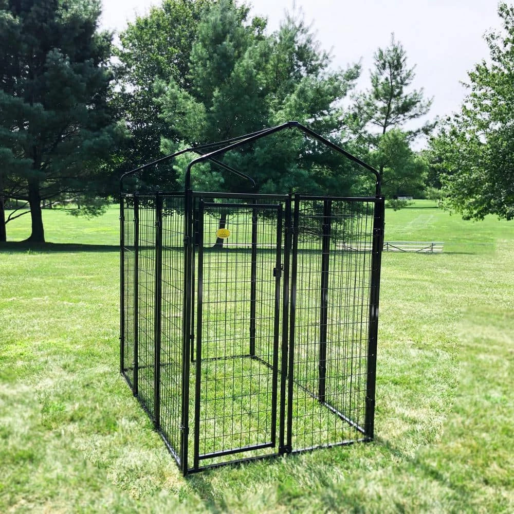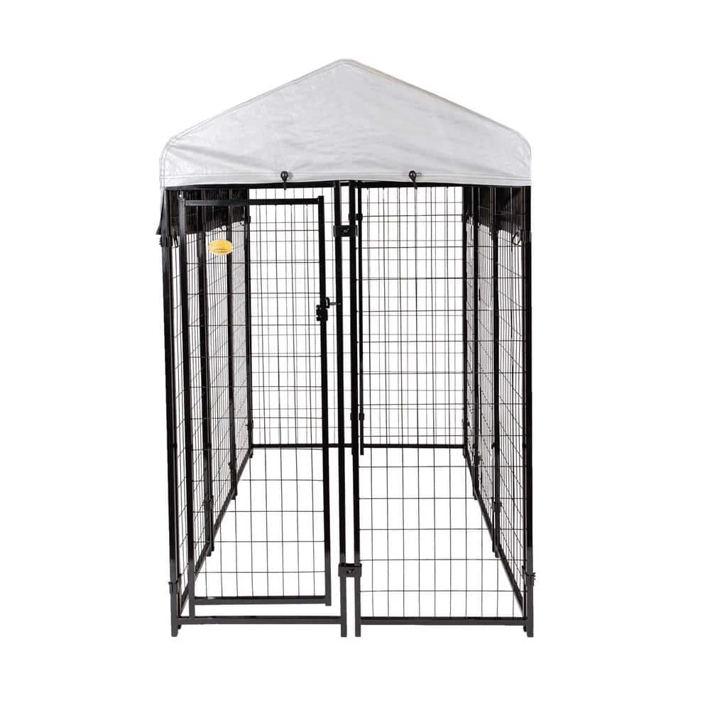 The KennelMaster 6 ft. x 4 ft. x 6 ft. kennel takes the complication out of assembling and installing an animal enclosure. Constructed of sturdy 12-gauge wire, this kennel is built to handle climbing, chewing, digging, and clawing. This solid steel kennel keeps your pet safe, while the waterproof cover provides shade from direct sunlight and shelter from rain. The vinyl-coated finish resists rusting and prolongs the life of your kennel, in addition to offering a sleek, finished look. Also available in a small 4 ft. x 4 ft. x 6 ft. size and a large 8 ft. x 4 ft x 6 ft. size.