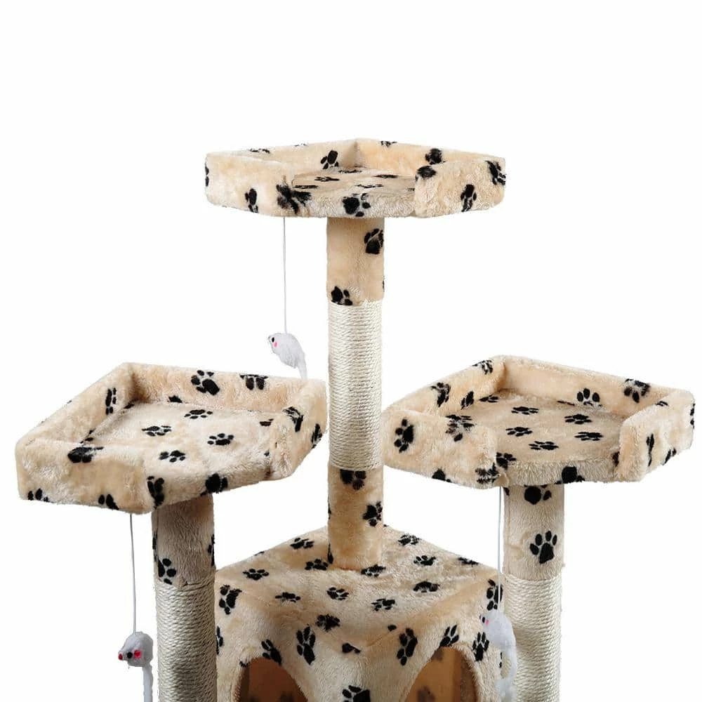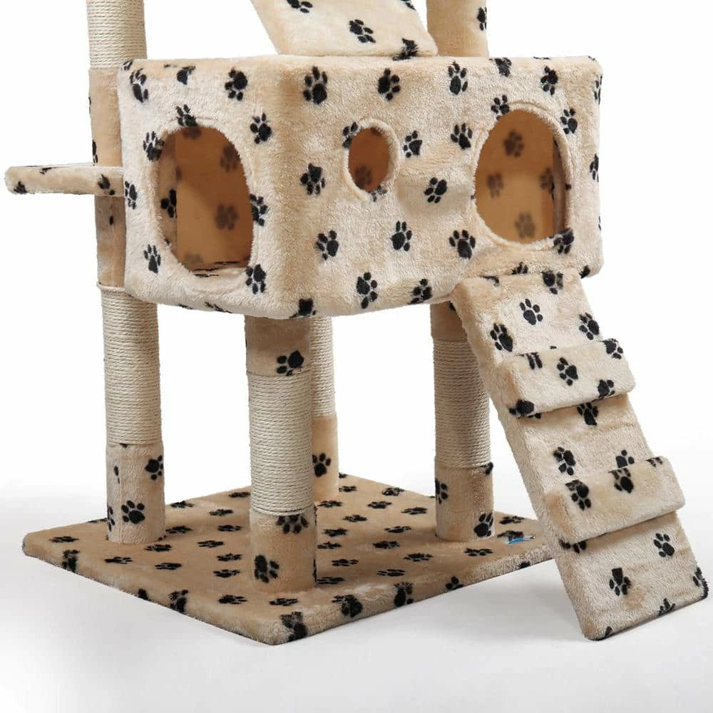 - 【Exclusive Play House for Kittens】 This 67″ multilevel cat tree with 5 platforms is an optimum place for your lovely kittens to play, rest, scratch and hide. Featuring attractive paw patterns, this cat tree tower will be an eye-catching addition to your existing decors.