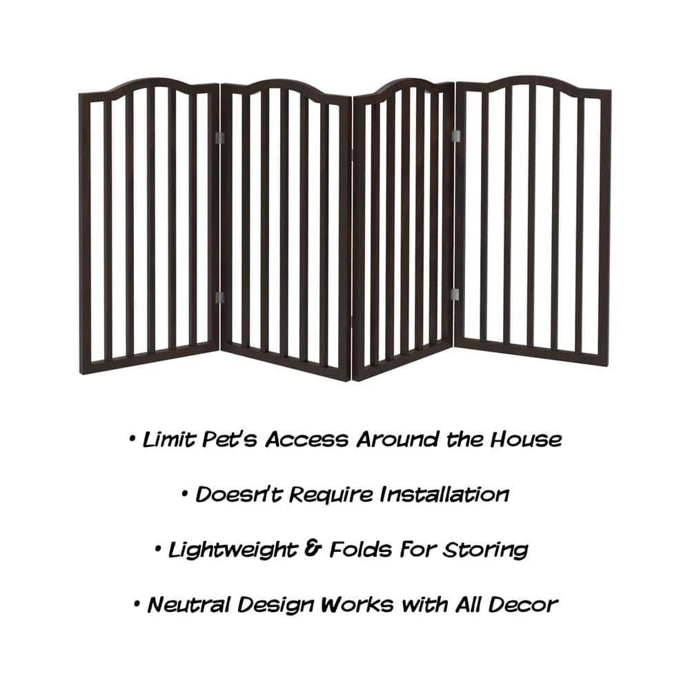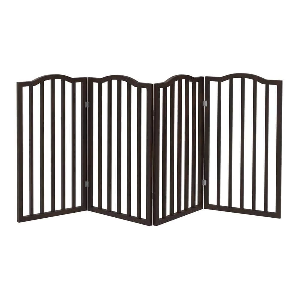 - ATTRACTIVE DESIGN- This barrier is a perfect way limit access to parts of your home while maintaining a stylish look. Each panel has a decorative arch design on top with a neutral brown finish that complements most home decor styles and color schemes.