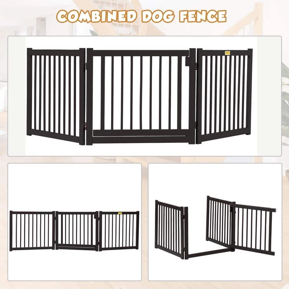 Does your beloved pet cause trouble and damage around the house and drive you crazy? What you need is a pet gate to limit the activity area of pets in the home. This COZIWOW freestanding dog gate can block off entry doors, stairs, hallways, room entrances, etc. to prevent pets from entering or enclose a space against the wall as an exclusive rest area for pets. This pet fence is freestanding, avoiding the trouble of drilling and installation. The middle panel is designed with a lockable door for people and pets to pass through, so that the owner does not need to step over or move the wooden dog gate frequently.
