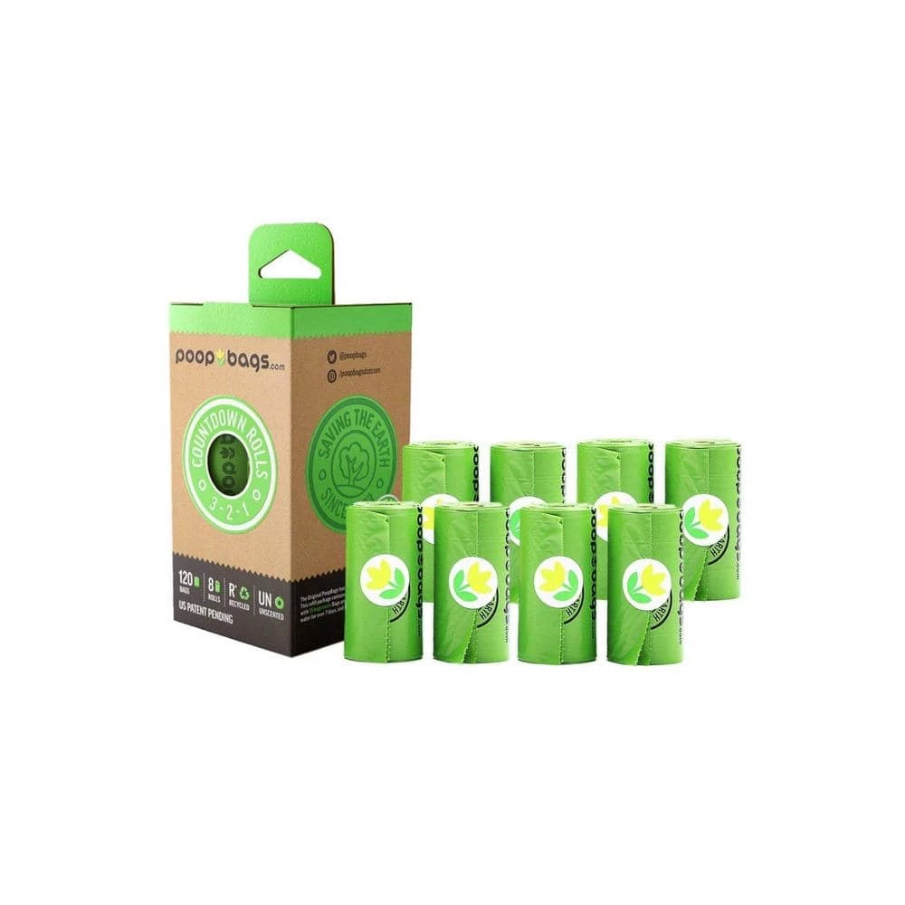 Countdown Rolls are individually numbered from 15 to 1 on every roll, so you know exactly how many are left on your roll. With a US patent pending, these bags are certified as USDA Biobased and they’re blended with the EPI additive to meet multiple eco-friendly certifications. These pet waste bags fit most leash attachment dispensers. 120-count per box, 15-count bags per roll and measure 9 in. x 13 in.