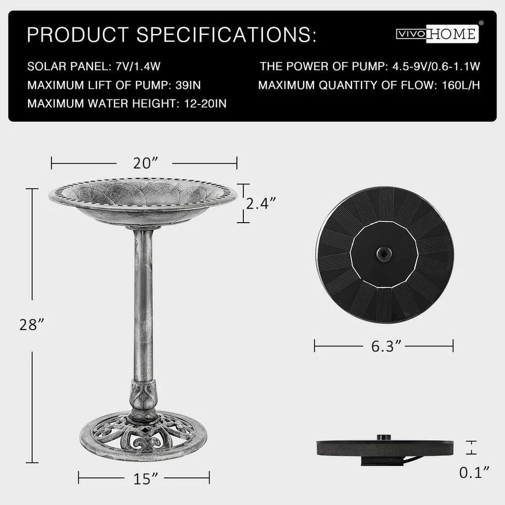 - Package include 1 garden bird bath and 1 solar powered water fountain pump