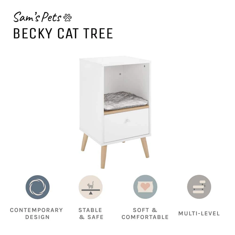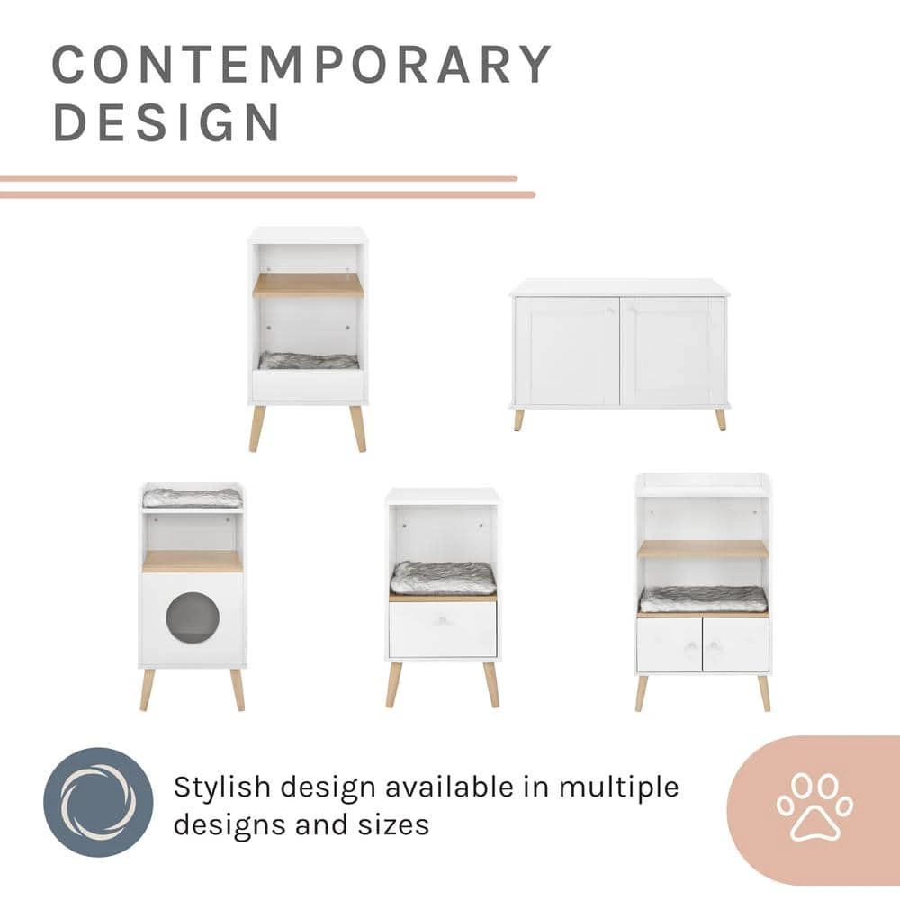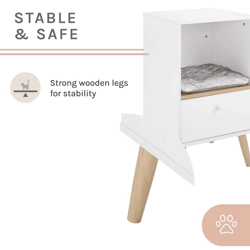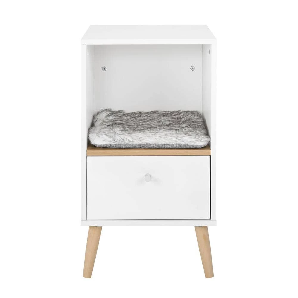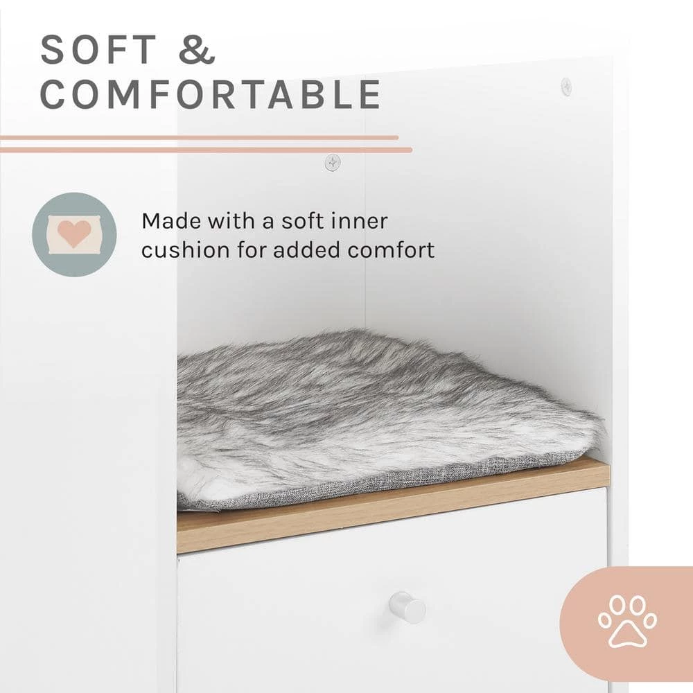 The Becky collection was designed to be useful to both you and your pet. The modern look and neutral color palette will fit effortlessly into your home, while the added drawer provides hidden storage space. Your pet will enjoy relaxing on the plush cushion within the self-nook.