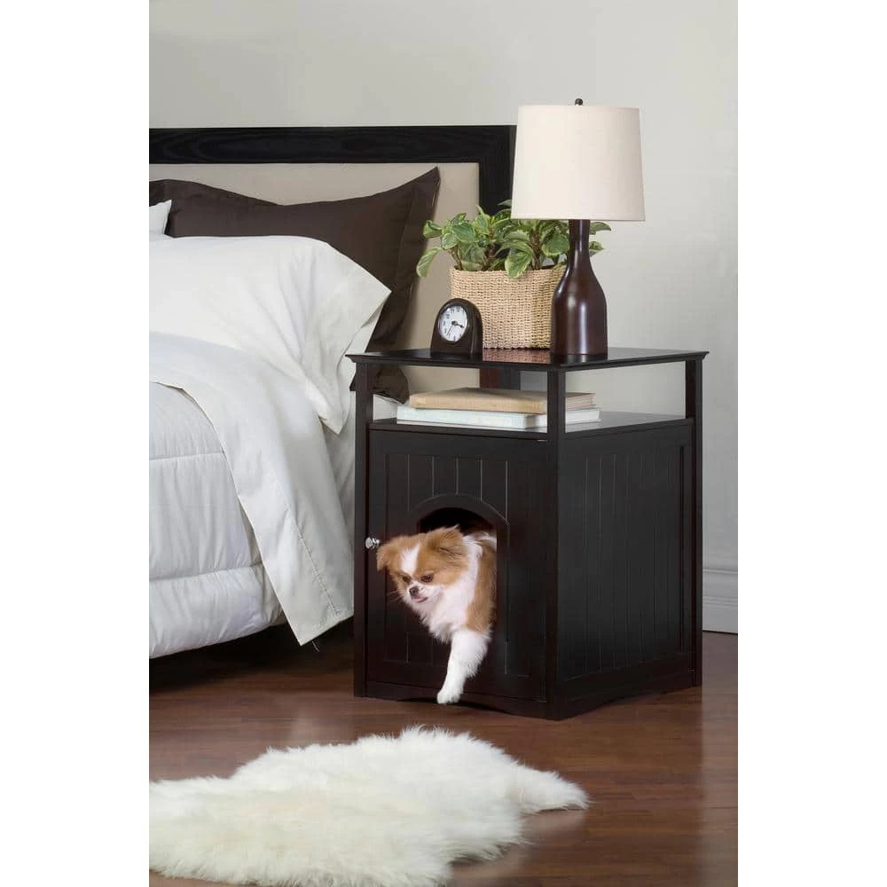 Cat washroom: No more mess from cat litter boxes. The Cat Washroom serves as an attractive cover to hide away the litter box and confine all litter messes inside, while providing useful shelf space and a stainless steel towel bar for many organizing options. Door opens wide for easy cleaning. Fits a large litter pan up to 18.00 in. W x 16.00 in. D. Litter Box not included. Night Stand Pet House: No more unmade and mismatched beds of your pet in your house. This multi-functional unit can also be used as a coffee table or night stand while providing a discrete resting/sleeping area for both dogs and cats, which satisfies your pets instinctive need to feel safe and happy. Patent Number: US D569,053 S.