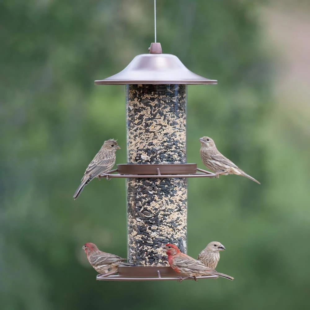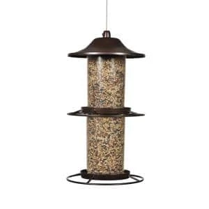 The Perky-Pet Panorama Wild Bird Feeder features our innovative Evenseed technology. This technology is like having 2 feeders in 1. Two independent seed compartments are filled and emptied separately, allowing the ports to stay active longer. Both compartments can also be filled with two different types of seed, thus attracting a larger variety of birds. With this feeder’s 4.5 lb. seed capacity, the Panorama Wild Bird Feeder provides plenty of seed to go around. The Sure-Lock cap system ensures the lid stays in place and no squirrels can get to the seed. This is another great feature on this feeder that helps keep squirrels out while allowing birds to have access to the seed. Remember to clean your wild bird feeders every two weeks with a mild soap and water solution.