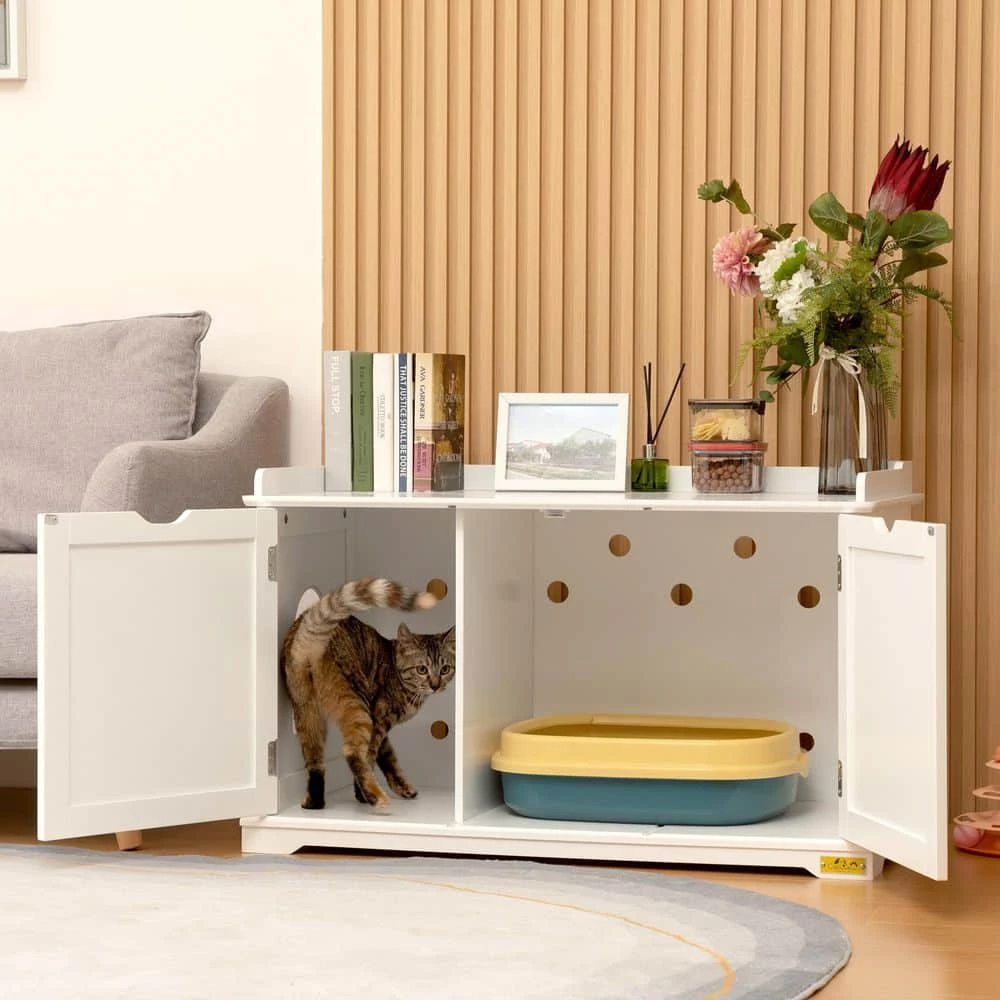 - Sturdy and durable construction: made from premium density board with a pet-friendly white finish, this cat washroom cabinet is scratch-resistant, waterproof, sturdy and durable, the reinforced bottom with 4 thickened feet ensures stability, preventing dampness from entering