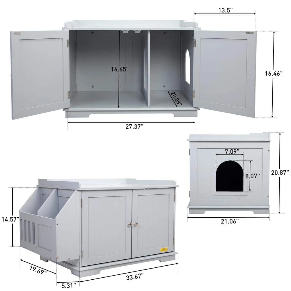 - Thoughtful design doors with knobs construct the front, open them and you can view the inside, convenient to tidy up your cat’s supplies 2 arched doors lead to the side exit while preventing cat litter from being kicked out of the box