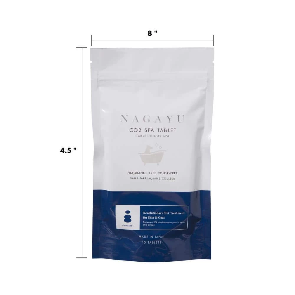 - Try with NAGAYU’s showerhead: after rinsing off shampoo, place 1 CO2 tablet into the shower head and rinse like normal, it will give you a much deeper cleansing result than a regular shower, it cleanses and applies moisture on skin and coat at the same time