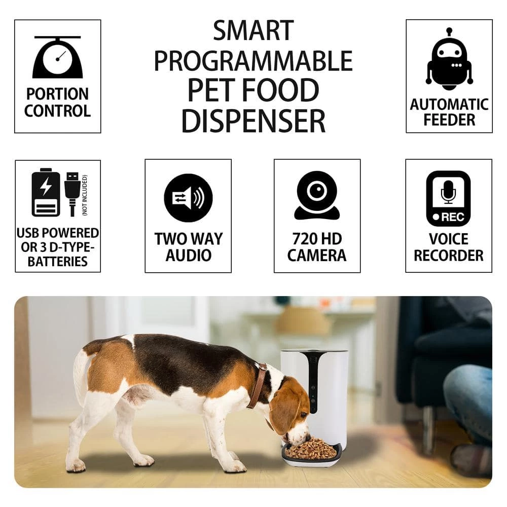 Feed and play with your pets from a distance with this smart pet feeder with two-way audio and built-in HD camera. Program mealtimes and portions and interact with your pets. Record photos and video from your smartphone phone with the free app.