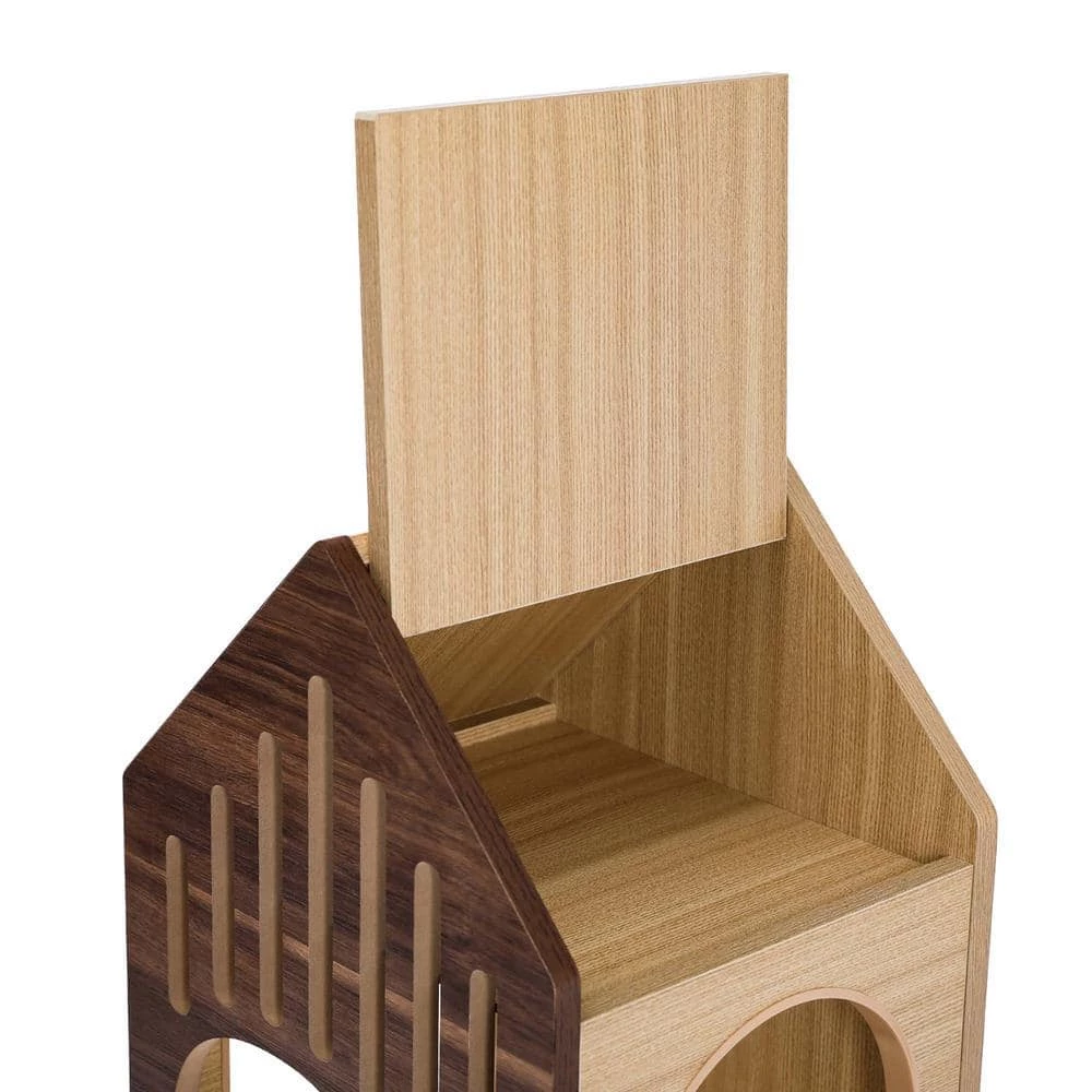 - Wood-grain cat tower based on castle design