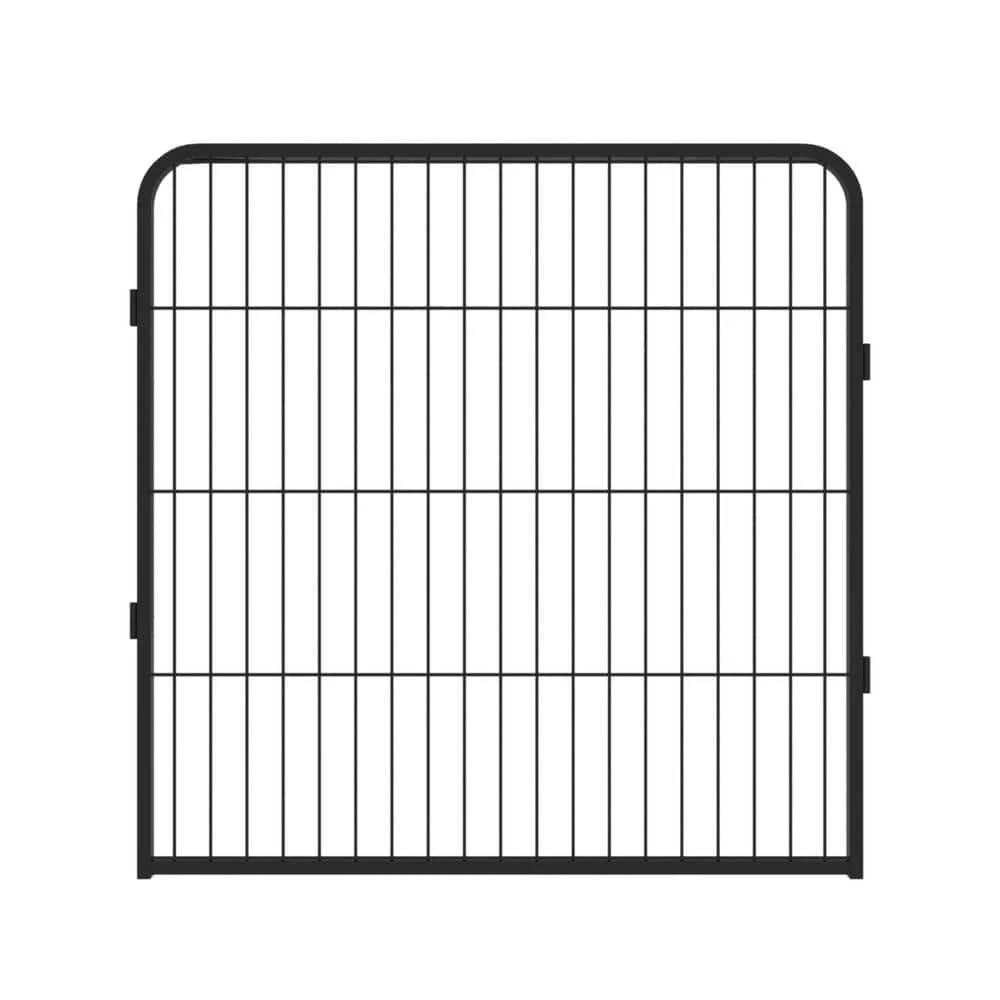 Our pet playpen includes 16-panels which are made of heavy-duty metal Iron tubes,you can ues a long time. Dimension for Each Panel: 31.5 in. x 31.5 in. (W x H ). Dimension for Each Door: 23.6 in. x 13 in. (H x W). The pet fence allows for multiple shapes, such as rectangle, square or octagon. It can be used both indoor and outdoor.
