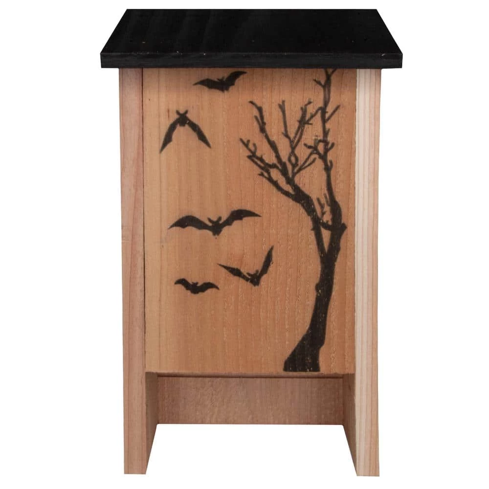 Our SandK Bat House houses 50 bat house snuggly but comfortable. Provides the bats in your backyard a place to roost. Simply hang preassembled bat house in your yard facing the southern exposure to warm during the day. Simply hang on an existing out building or use one of the SandK Poles. The House is lightweight, made of cedar and decorated. Great addition to any backyard.