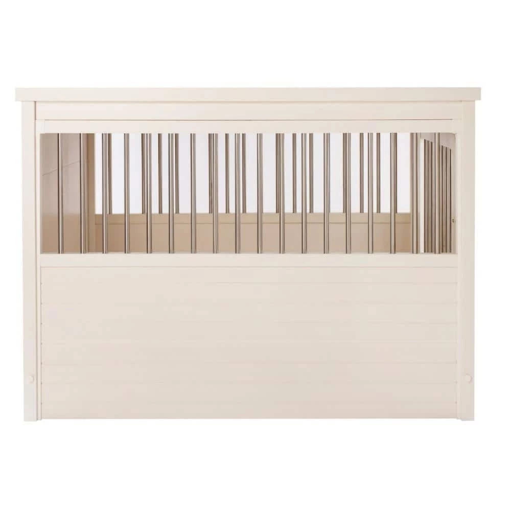 This ECOFLEX Dog Crate End Table is the perfect place for your pet when they are indoors. This ECOFLEX Crate End Table can easily do double duty in many houses where it can serve as an end table in the family room, bedroom or living room. Made of ECOFLEX material. ECOFLEX is a proprietary formula that incorporates reclaimed wood and plastic into the material that allows the product to be eco-friendly and a great value as it will outlast most other products. Designed for this use and carries an unprecedented one (1) year manufacturer warranty. Can be painted to coordinate with your other furnishings and inspire your pet style. Removable table top for easy cleaning. Color will never fade. Front door latches securely and cannot be accidentally opened. Small and Medium crates have one secure latch. Large and Extra Large crates have two secure latches. Crates are made for dogs that are familiar with crates and are less likely to chew. Spindles made of stainless steel tubing. Please note that any crate that isn’t 100% wire or metal has the ability to be chewed. This ECOFLEX Dog Crate melds form and function into a crate that can double as a piece of your home decor. Available in four sizes. Small for dogs up to 20 lbs. Medium for dogs up to 50 lbs. Large for dogs up to 80 lbs. X-Large for dogs up to 100 lbs. This product may not be a good fit for dogs that suffer from anxiety.