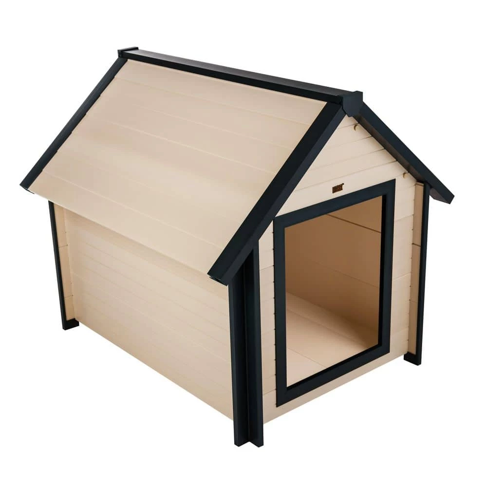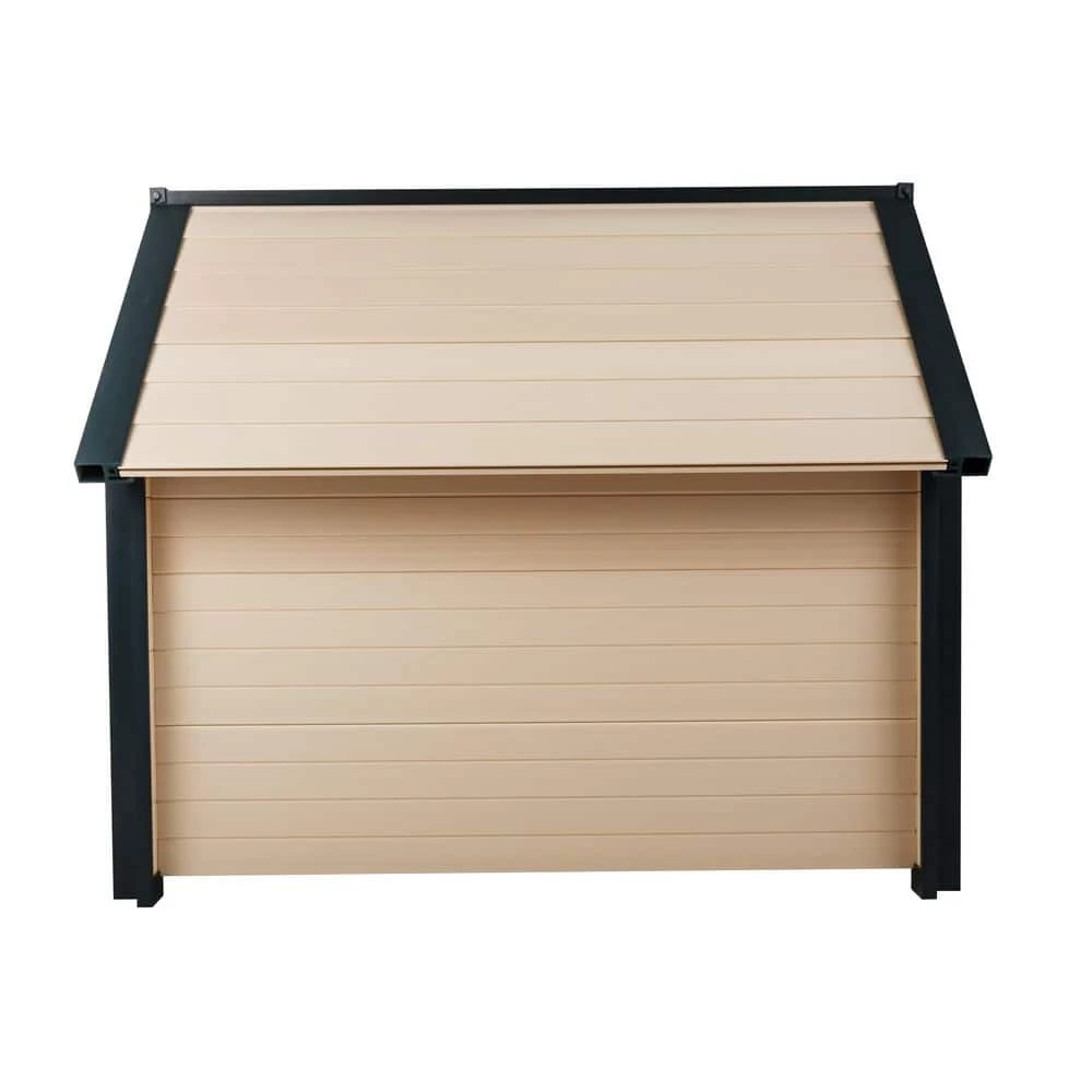 The NewAgePet Bunk House Dog House is made with ECOFLEX, a proprietary composite blend of recycled polymers and reclaimed wood fiber by-products. The ECOFLEX material is non-toxic, eco-friendly and impervious to moisture and odor, making it the perfect material to keep your pet happy and healthy. All NewAgePet outdoor products are backed by an unrivaled 10-year limited manufacturer warranty. This dog house features a raised floor design for superior ventilation and a roof that removes easily for cleaning. Door flap available for separate purchase. Offered in sizes Large and X-Large. Available in Maple with Green trim and Gray with White trim. NewAgePet products are easy to assemble, easy to clean and easy to LOVE!
