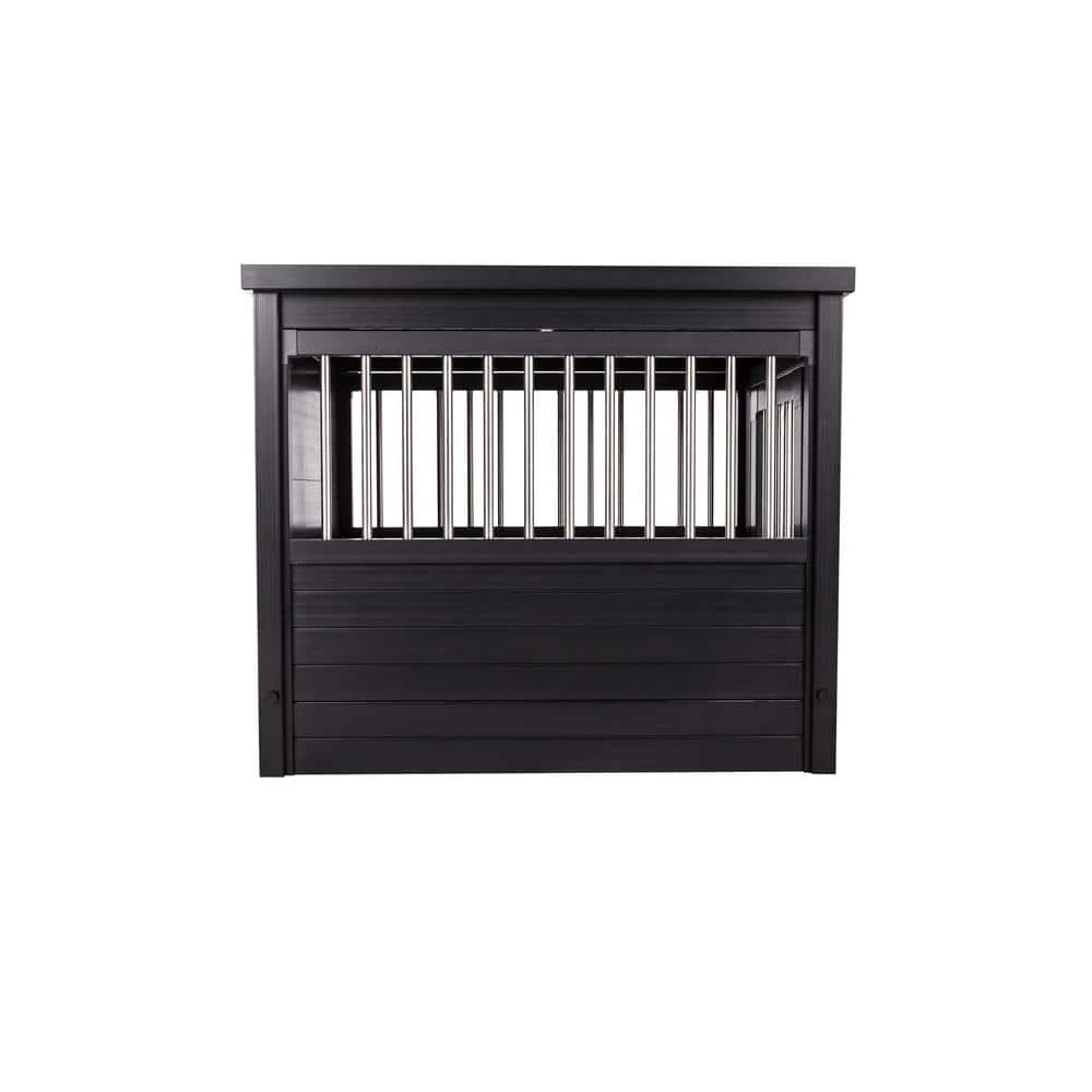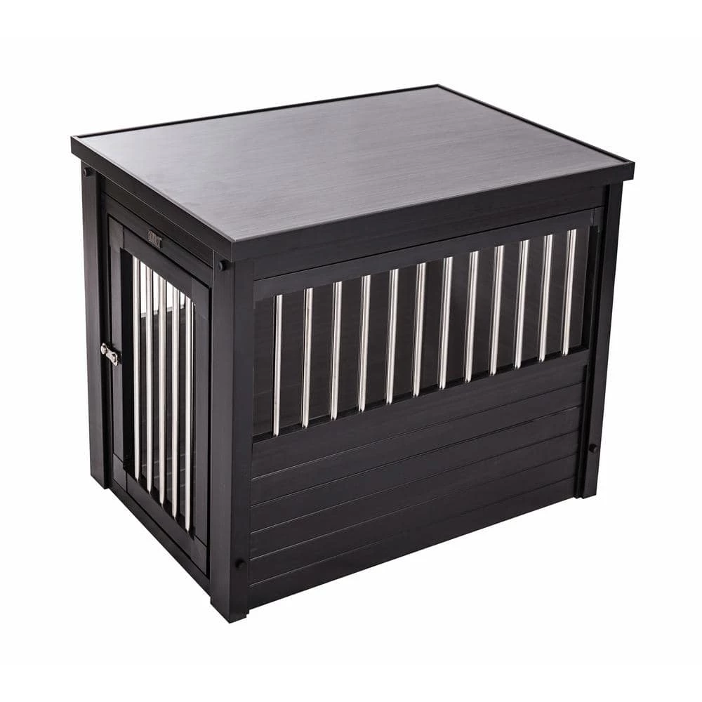 This ECOFLEX Dog Crate End Table is the perfect place for your pet when they are indoors. This ECOFLEX Crate End Table can easily do double duty in many houses where it can serve as an end table in the family room, bedroom or living room. Made of ECOFLEX material. ECOFLEX is a proprietary formula that incorporates reclaimed wood and plastic into the material that allows the product to be eco-friendly and a great value as it will outlast most other products. Designed for this use and carries an unprecedented one (1) year manufacturer warranty. Can be painted to coordinate with your other furnishings and inspire your pet style. Removable table top for easy cleaning. Color will never fade. Front door latches securely and cannot be accidentally opened. Small and Medium crates have one secure latch. Large and Extra Large crates have two secure latches. Crates are made for dogs that are familiar with crates and are less likely to chew. Spindles made of stainless steel tubing. Please note that any crate that isn’t 100% wire or metal has the ability to be chewed. This ECOFLEX Dog Crate melds form and function into a crate that can double as a piece of your home decor. Available in four sizes. Small for dogs up to 20 lbs. Medium for dogs up to 50 lbs. Large for dogs up to 80 lbs. X-Large for dogs up to 100 lbs. This product may not be a good fit for dogs that suffer from anxiety.