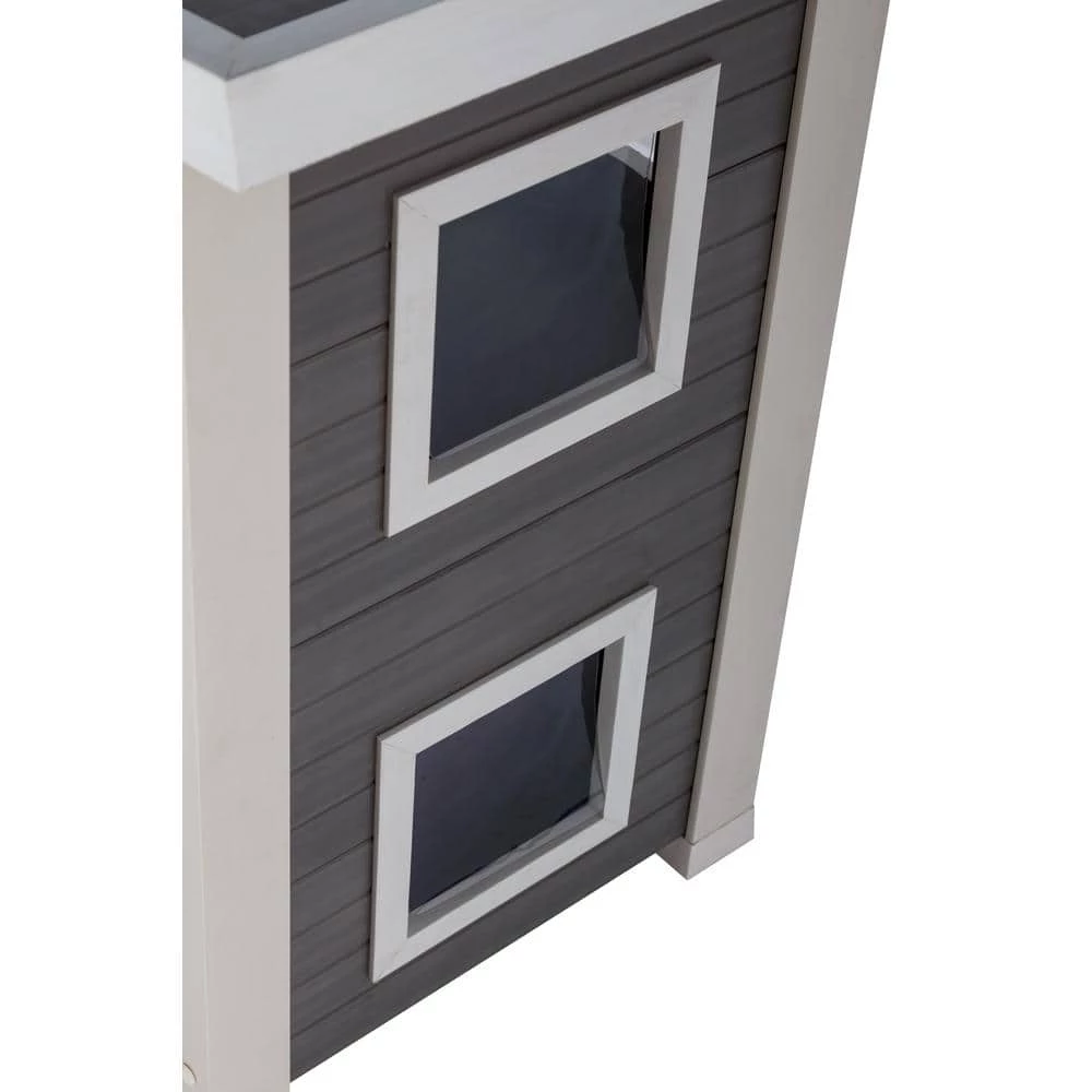 Townhouse living for the outdoor cats. This ECOFLEX Outdoor Cat Town House is the perfect shelter for your own outdoor cat or the neighborhood feral (stray) cats. Keep the outdoor kitties safe from the elements. The ECOFLEX outdoor feral cat townhouse is perfect for cats that need shelter from the elements. This house will withstand the elements and provide comfort and security to outdoor cats. ECOFLEX is a propriety formula that incorporates reclaimed wood and plastic. ECOFLEX is 100% non toxic and does not absorb moisture. There is nothing in ECOFLEX that could harm your pets or in this case, strays. Easy no tools assembly. Removable roof for easy care and maintenance. 10-year limited manufacturer warranty.