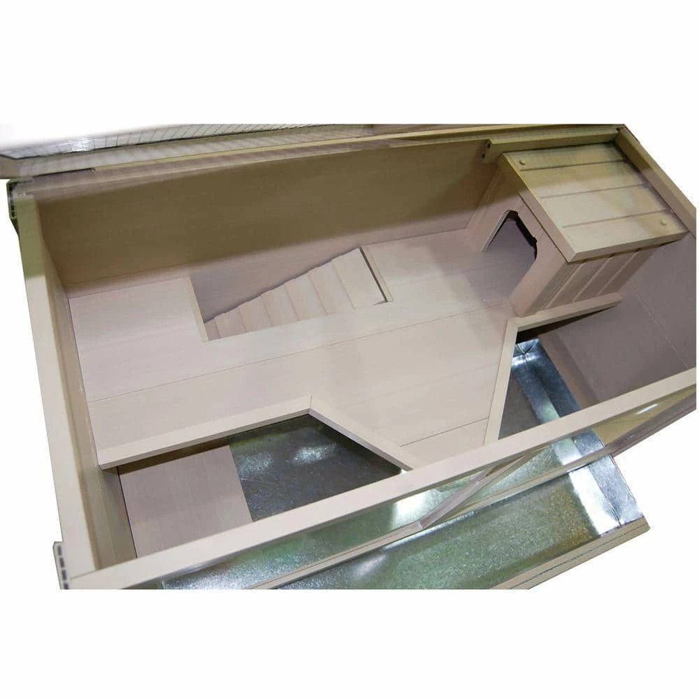 The ECOFLEX Park Ave Indoor Rabbit Hutch is an upgraded solution to housing your rabbits or small animals. A non-toxic solution. Houses 1-2 rabbits comfortably. Two levels of fun for your bunny. Clear, polycarbonate windows resist breaking. Made of ECOFLEX. ECOFLEX is a proprietary formula that incorporates reclaimed wood and plastic into the material that allows the product to be eco-friendly and a great value as it will outlast most other products. ECOFLEX is 100% non toxic and does not absorb moisture. There is nothing in ECOFLEX that could harm your pets. Easy no tools assembly. 19.7″x 39.4″x 23.6″