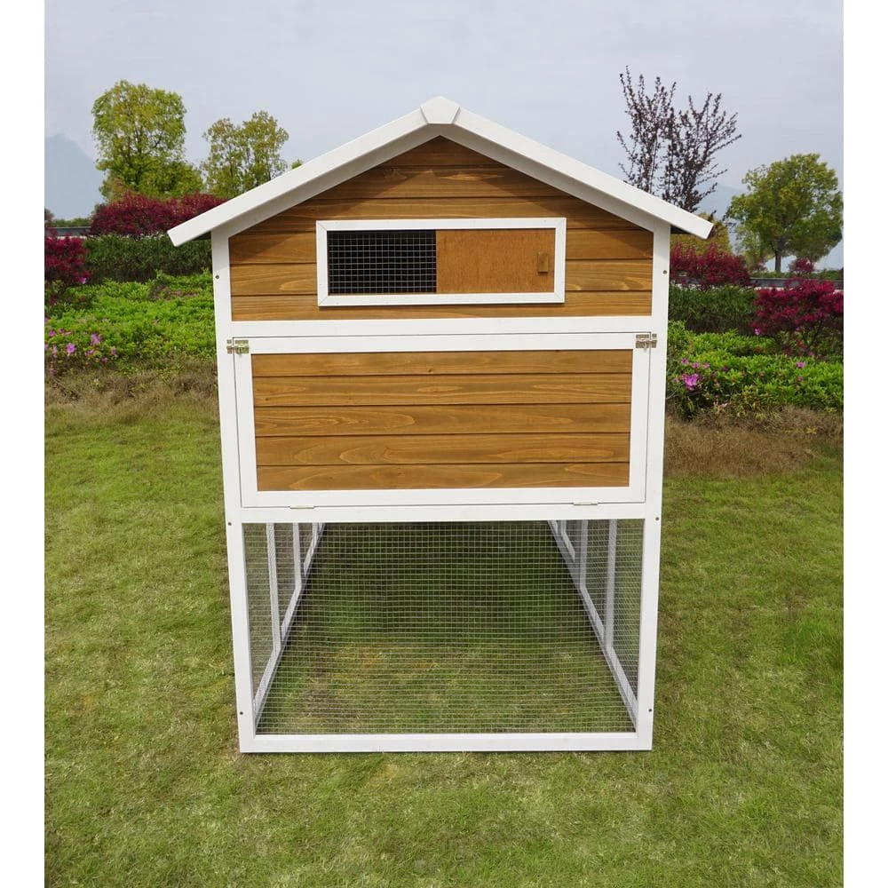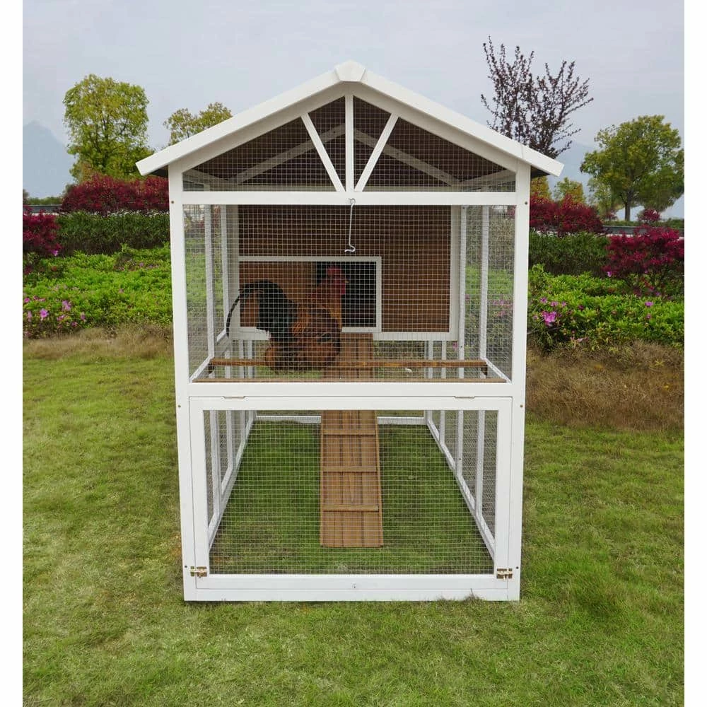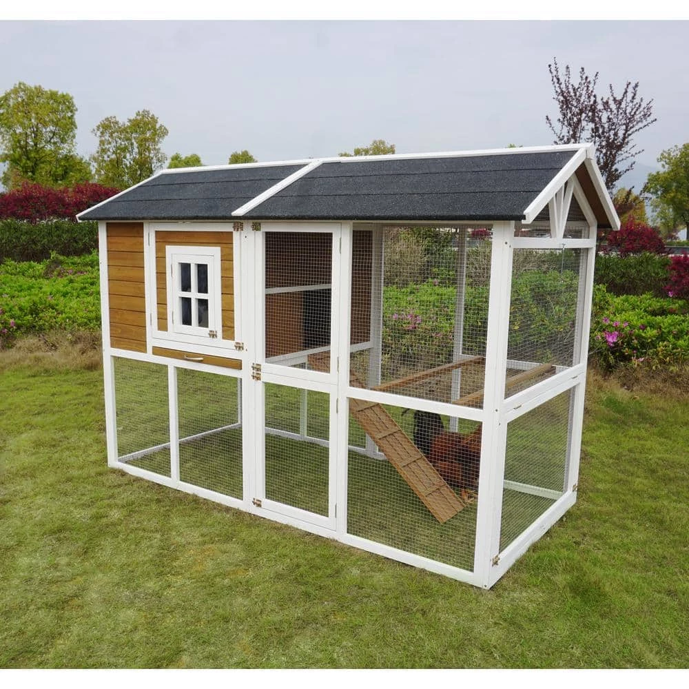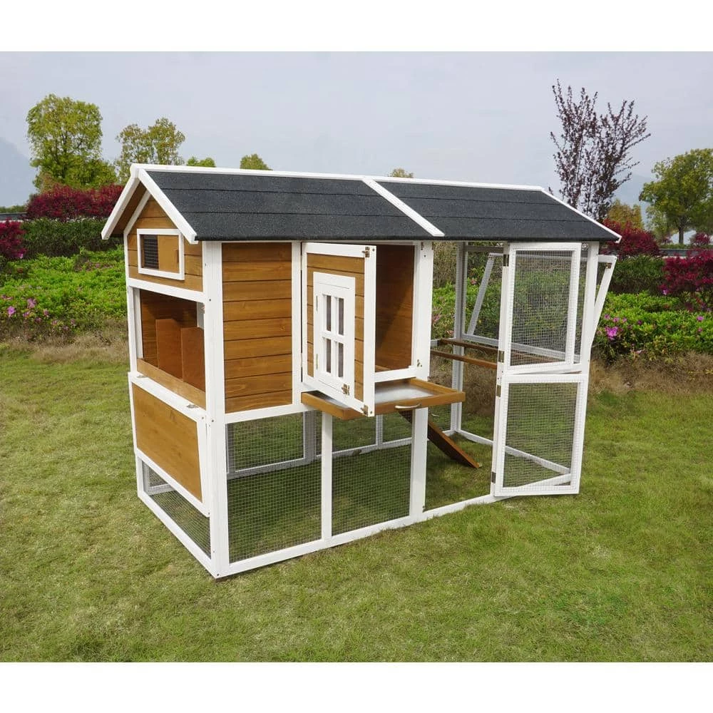 Treat your chickens with this stylish farm styled coop, designed to hold up to 8 chickens. Included with this unit is 1 large nesting box with 3 individual compartments and a hinged access door. Also featured in this design is a tall 2-part door, allowing you to step inside and clean the coop with ease. The spacious run and house area will provide your chickens with a secure home and plenty of room to move around. The entire unit is made from quality Canadian Hemlock, and will grace your backyard for a long time.