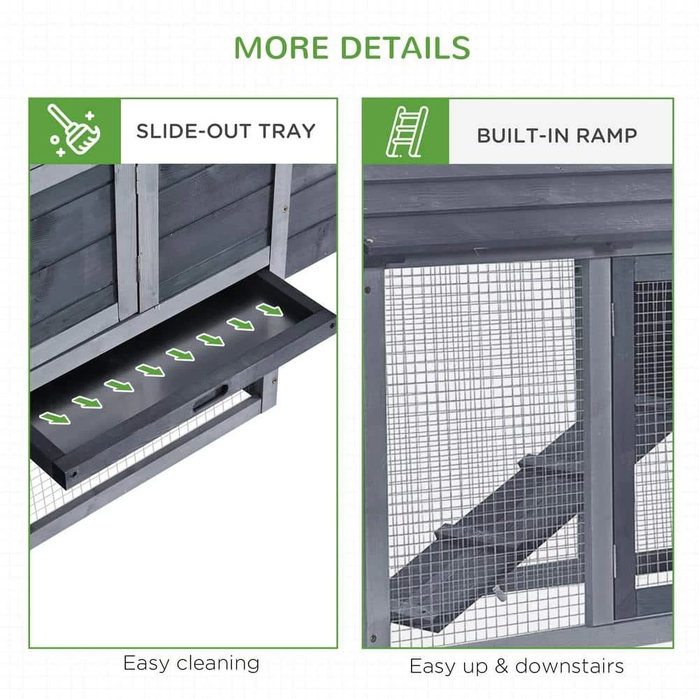 - Quality fir wood construction with an elevated house, nesting box, run, ramp and doors