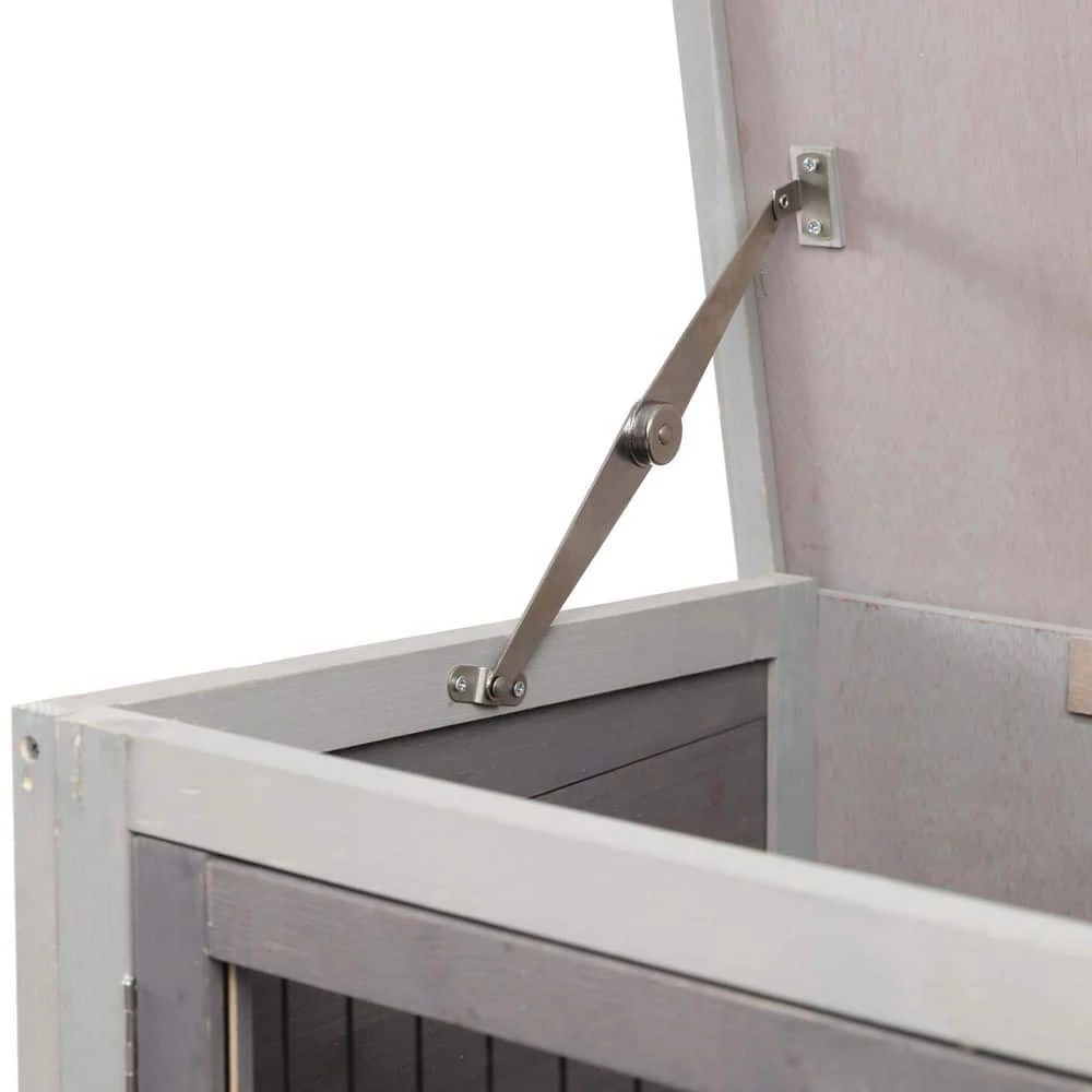 - With a secure raised sleeping quarters accessible via a wooden ramp, the hutch gives ample space for your pet, the front of the hutch features 2 easy open and close latched doors and the sleeping area has a slide out tray to make cleaning as easy as possible