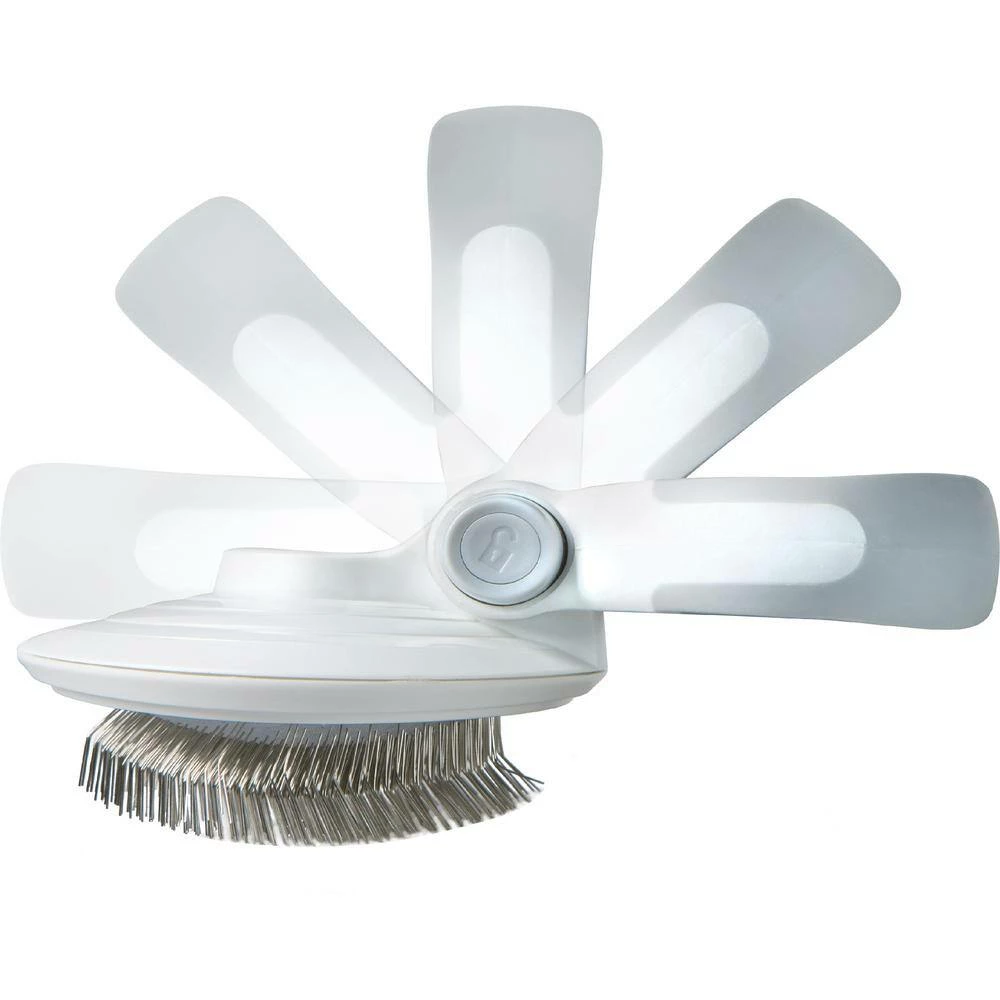 The PET LIFE ‘Gyrater’ Travel Swivel Pet Slicker Brush features a Built-in customizable rotating handle hinge that both swivels and locks into place at the press of a button to your desired handle setting. This Brush offers both a Palm and Knuckle Handle grip options and features a contoured inner grip with a Rubber-like TPR material for added comfort and control while brushing. Designed to place less Stress on the hands and wrists during usage. The Fine Wired Flexible Stainless Steel Slicker Bristles are perfect for Medium-to-Long and Curly Haired Cats and Dogs and designed to easily remove Mats and Tangles and Smoothen Hair. The Stainless Steel Pins on the brushed are connected to an air cushion for a smoother brushing experience that’s easier on the hair. Small and Compact make it perfect for Travel. SIZING DIMENSIONS: (INCHES) L x W x H 4.13 X 2.76 X 2.05 in. H.