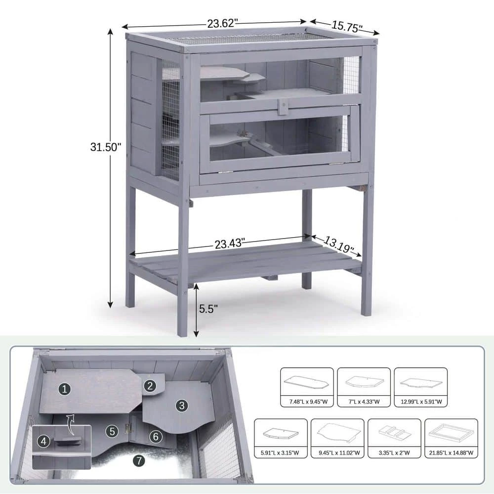 Overall size: 23.62 in. L x 15.75 in. W x 31.50 in. H. It has nice design and durable structure. Perfect choice for your cute pet live and rest insides.