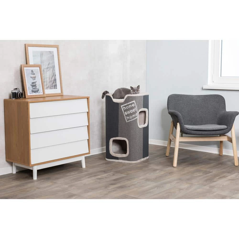 Your cat will be Home Sweet Home with TRIXIE’s Jorge Cat Condo. Jorge features a 2-Story condo with 2 openings and sisal scratching surfaces on the barrel. The top of the tower features spacious bed with a removable cushion. If your pet likes to play hide and seek there are 2 openings to the cave for them to explore and use. The cave comes with a removeable plush cushion for extra-comfort. The slim design allows for it to be placed in smaller spaces in any home, apartment or dorm.