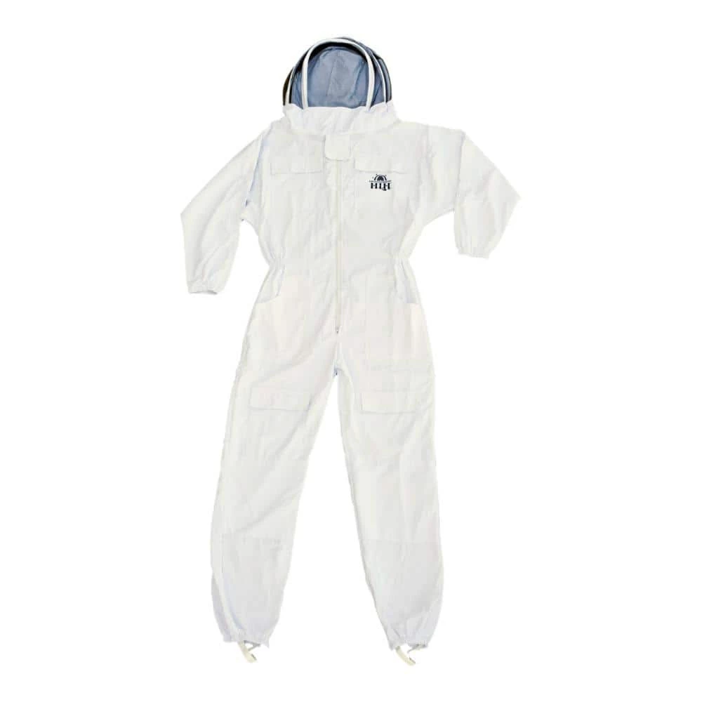 This HARVEST LANE HONEY full bee keeping suit with hood is constructed with a thick poly cotton fabric and metal zippers. It has sewn in elastic at the end of the arms and legs for better protection. The full face mesh hood allows for great advisability.
