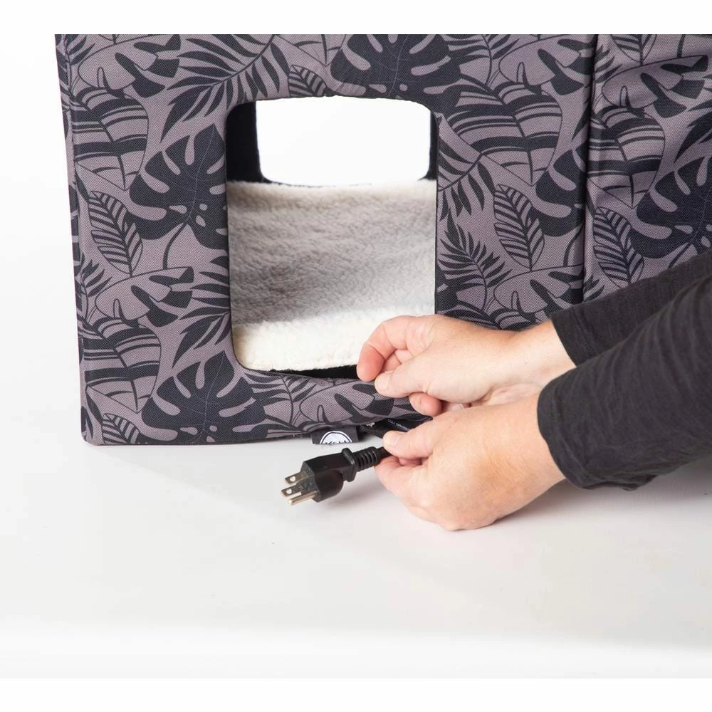 - Heated option has a low-energy 20-Watt lectro-soft heated pet bed on the first floor and thick nylon vinyl backed pad for the second floor
