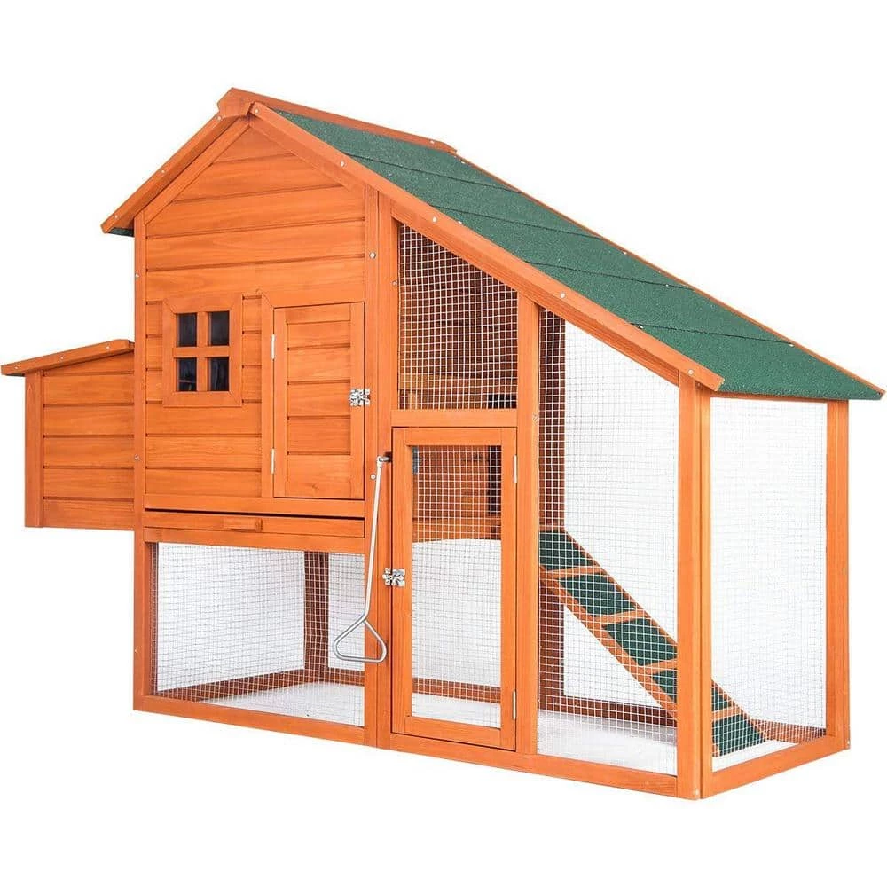 - Spacious activity areas and warm sheltered resting room is perfect for chickens