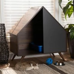 Mia Walnut and Grey Wood Cat Litter Box Cover House by Baxton Studio