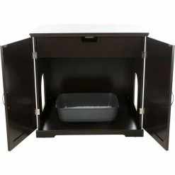 Wooden Cat House and Litter Box Enclosure Nightstand with 4 Vents, White by COZIWOW
