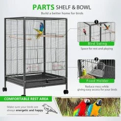 30 in. H Wrought Iron Bird Cage with Rolling Stand for Parrots Conure Lovebird Cockatiel by VIVOHOME