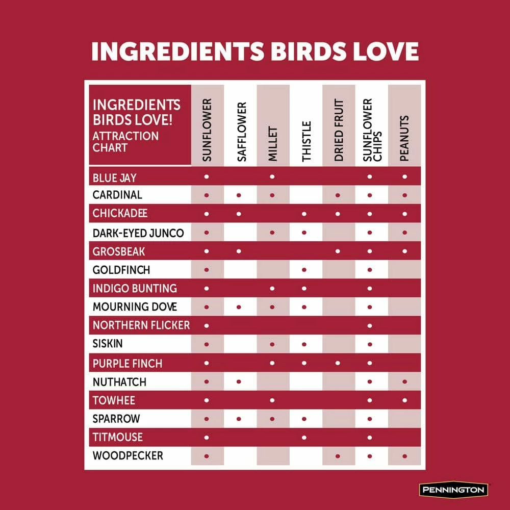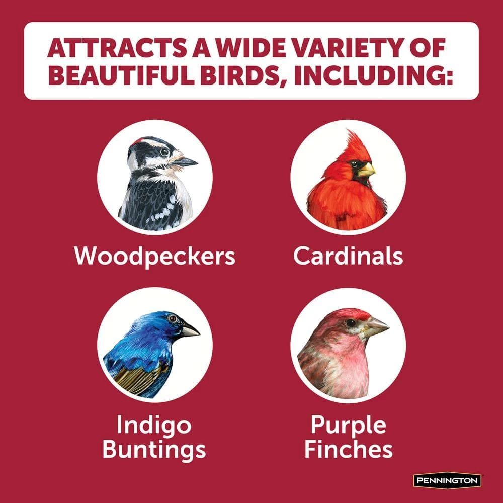 - Attracts Finches, Cardinals, Woodpeckers, Titmice, Juncos and more