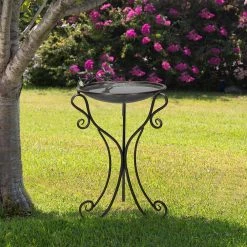 23 in. Tall Outdoor Metal Bird Bath Stand Decor Accessory, Black by Alpine Corporation