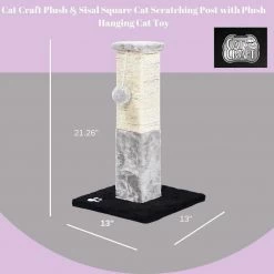 Plush and Sisal Square Cat Scratching Post with Plush Hanging Cat Toy, Gray/Natural by CAT CRAFT